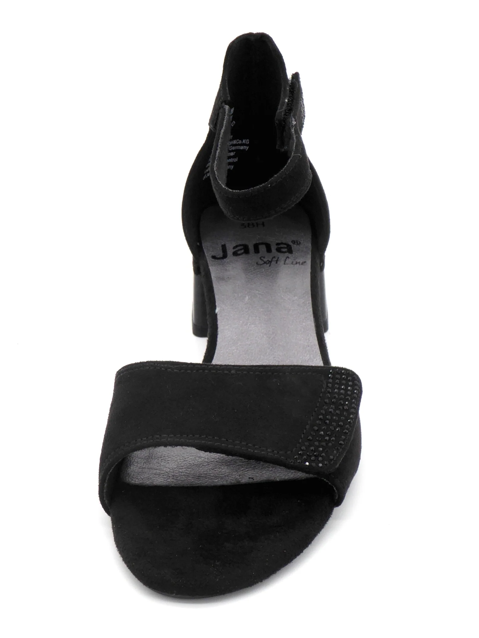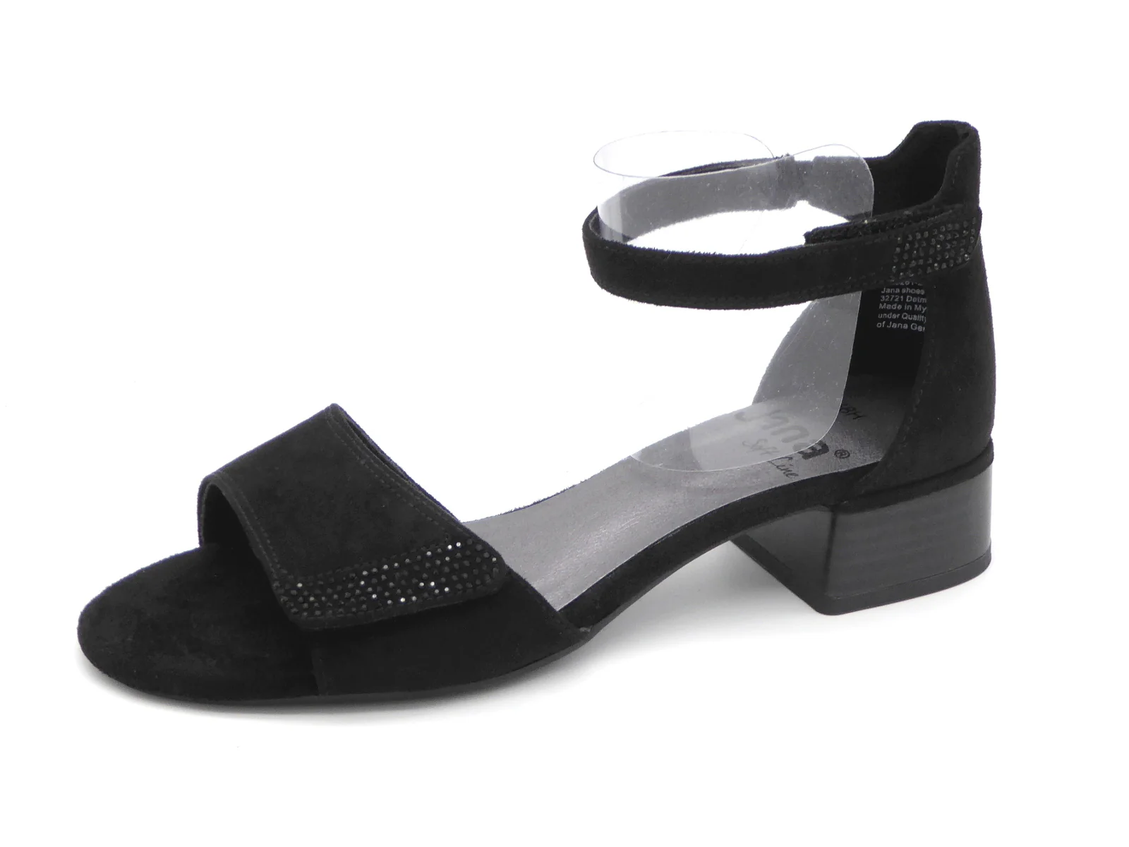 Jana modische sandalette uit de Softline serie, uitgevoerd in hoogwaardig textiel. De sandalette heeft een klittenbandsluiting op de voorvoet en bij de gesloten hiel een enkelbandje met klittenbandsluiting. De voering is van textiel evenals het voetbed, dat niet uitneembaar is. Diverse onderdelen van deze schoen bevatten gereclycled PET flessen. Deze sandalette is gemaakt in wijdte H en heeft een hakhoogte van 40 mm.
