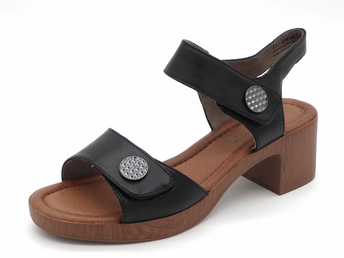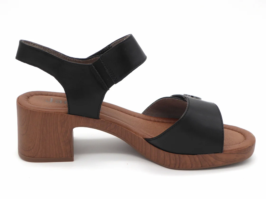 Jana comfortabele sandalette uit de Softline serie. Het bovenwerk is van mooi zwart kunstleer met 2 klittenband sluitingen met een sierknoop. De voering is van textiel. De sandalette is gemaakt in een iets bredere leest wijdte H. De loopzool in houtlook heeft een hakhoogte van 60 mm. Diverse onderdelen van deze sandalette bevatten gerecycled PET flessen.