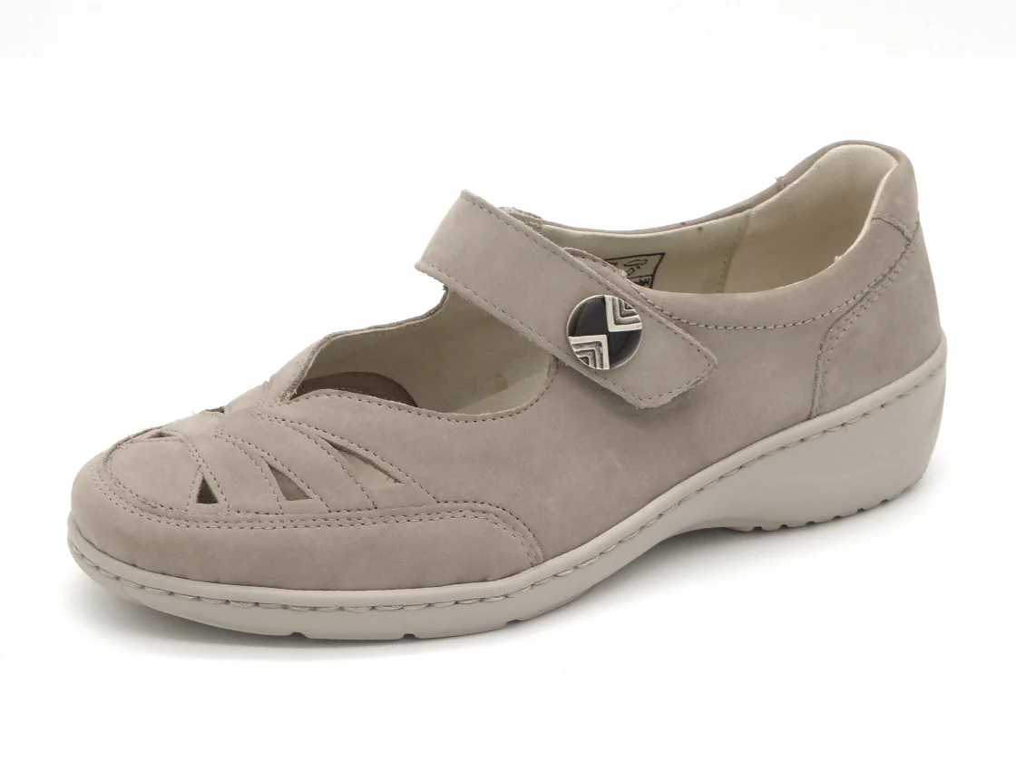 Waldläufer comfortabele bandschoen met klittenbandsluiting van een aangenaam, hoogwaardig leer. De binnenkant van de schoen is uitgerust met chroomvrij leer. Het klittenband zorgt ervoor dat de schoen eenvoudig aan- en uit worden getrokken en biedt de voet stevigheid. Deze bandschoen heeft een uitneembaar voetbed dat, indien nodig, vervangen kan worden door losse inlegzolen. Dit model is gemaakt in een brede leest wijdte K (Kya). De PU-zool heeft een hakhoogte van ongeveer 2,5 cm.