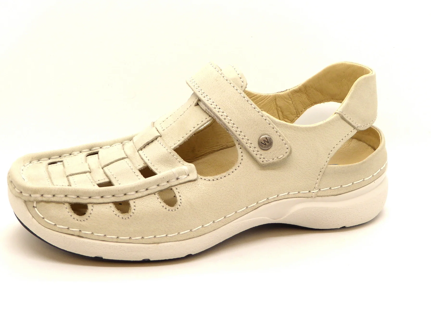 Deze Wolky dames T-bandschoen model Rolling Sun heeft een bovenwerk van een aangenaam, hoogwaardig soepel leer. De voering is ook van leer. De schoen is gemaakt in mocassin-maakwijze (afwerking aan de buitenkant) en hierdoor heb je geen last van randen en naden die je voet irriteren. Deze inbetween combineert de voordelen van een schoen met de luchtigheid van een sandaal en heeft een klittenbandsluiting op de wreef voor een optimale verstelbaarheid. Het zachte met leer bedekte anatomisch voetbed kan, indien nodig, vervangen worden door eigen (steun)zolen. Door de diepe kuipzool is deze schoen uitermate geschikt voor alle type steunzolen. De schoen heeft een lichtgewicht PU-loopzool. De afrolneus stimuleert een goede afwikkeling van de voet.