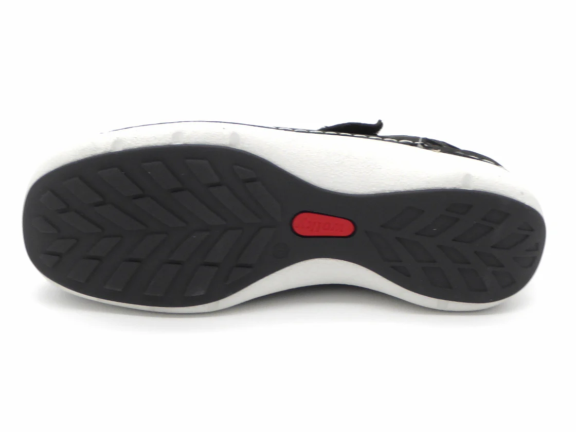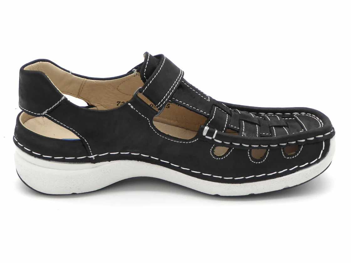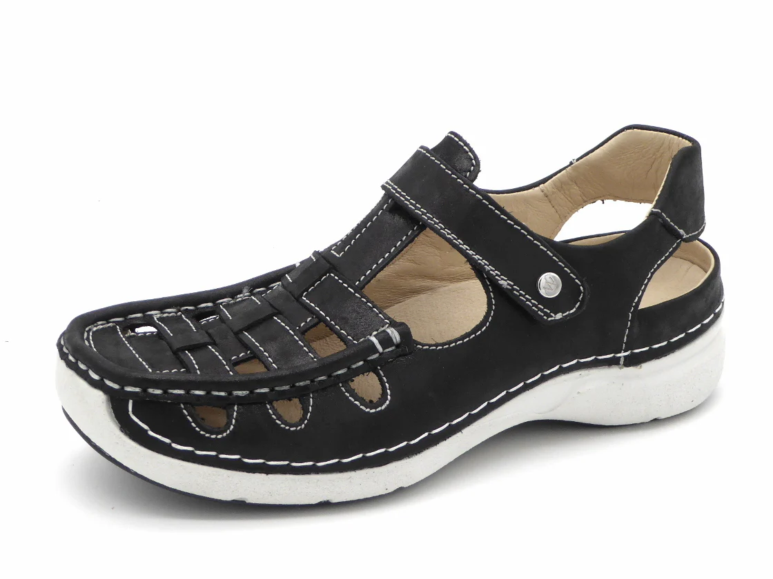 Deze Wolky dames T-bandschoen model Rolling Sun heeft een bovenwerk van een aangenaam, hoogwaardig soepel leer. De voering is ook van leer. De schoen is gemaakt in mocassin-maakwijze (afwerking aan de buitenkant) en hierdoor heb je geen last van randen en naden die je voet irriteren. Deze inbetween combineert de voordelen van een schoen met de luchtigheid van een sandaal en heeft een klittenbandsluiting op de wreef voor een optimale verstelbaarheid. Het zachte met leer bedekte anatomisch voetbed kan, indien nodig, vervangen worden door losse inlegzolen. Door de diepe kuipzool is deze schoen uitermate geschikt voor alle type steunzolen. De schoen heeft een lichtgewicht PU-loopzool. De afrolneus stimuleert een goede afwikkeling van de voet.