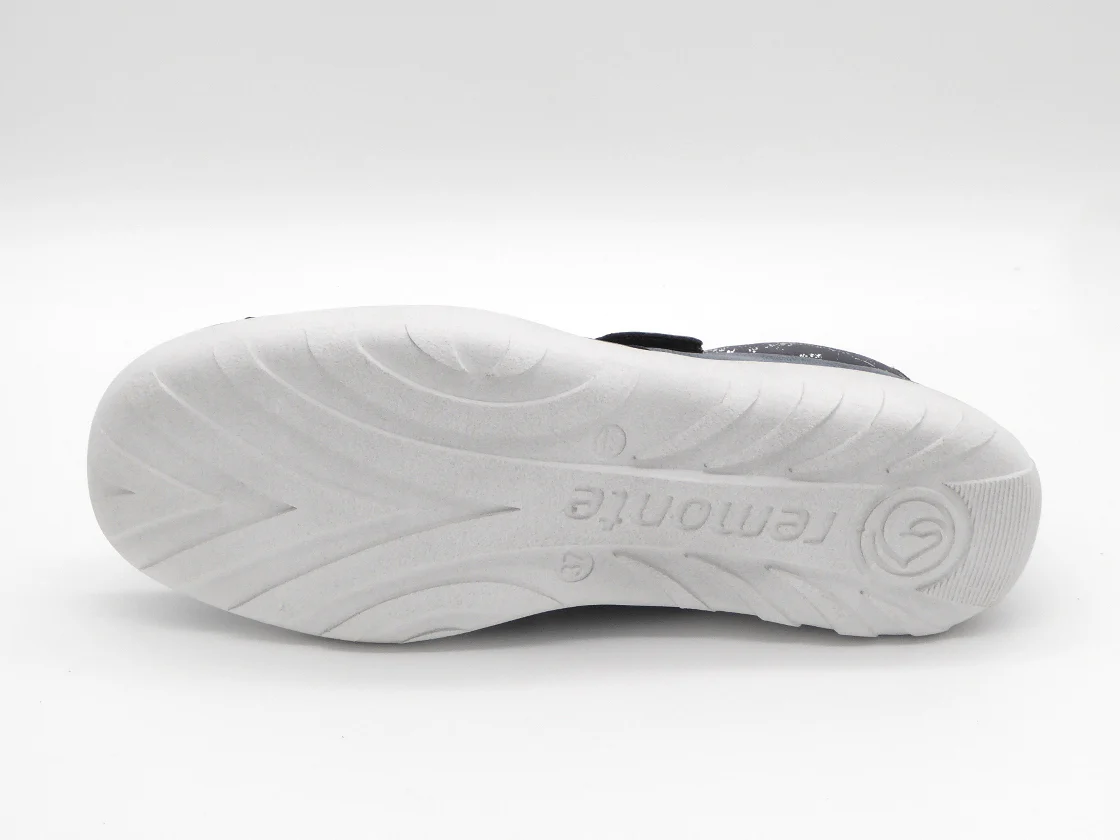 Dames bandschoen uit de Remonte Soft collectie. Deze bandschoen is gemaakt van een hoogwaardig synthetisch materiaal met stretch inzetten aan de zijkanten. De binnenkant van de schoen is uitgerust met textiel. Het klittenband zorgt ervoor dat de schoen eenvoudig aan- en uit worden getrokken en biedt de voet stevigheid. Het met leer beklede uitneembare voetbed kan, indien nodig, vervangen worden door losse inlegzolen. De schoen heeft een flexibele lichtgewicht PU-zool.