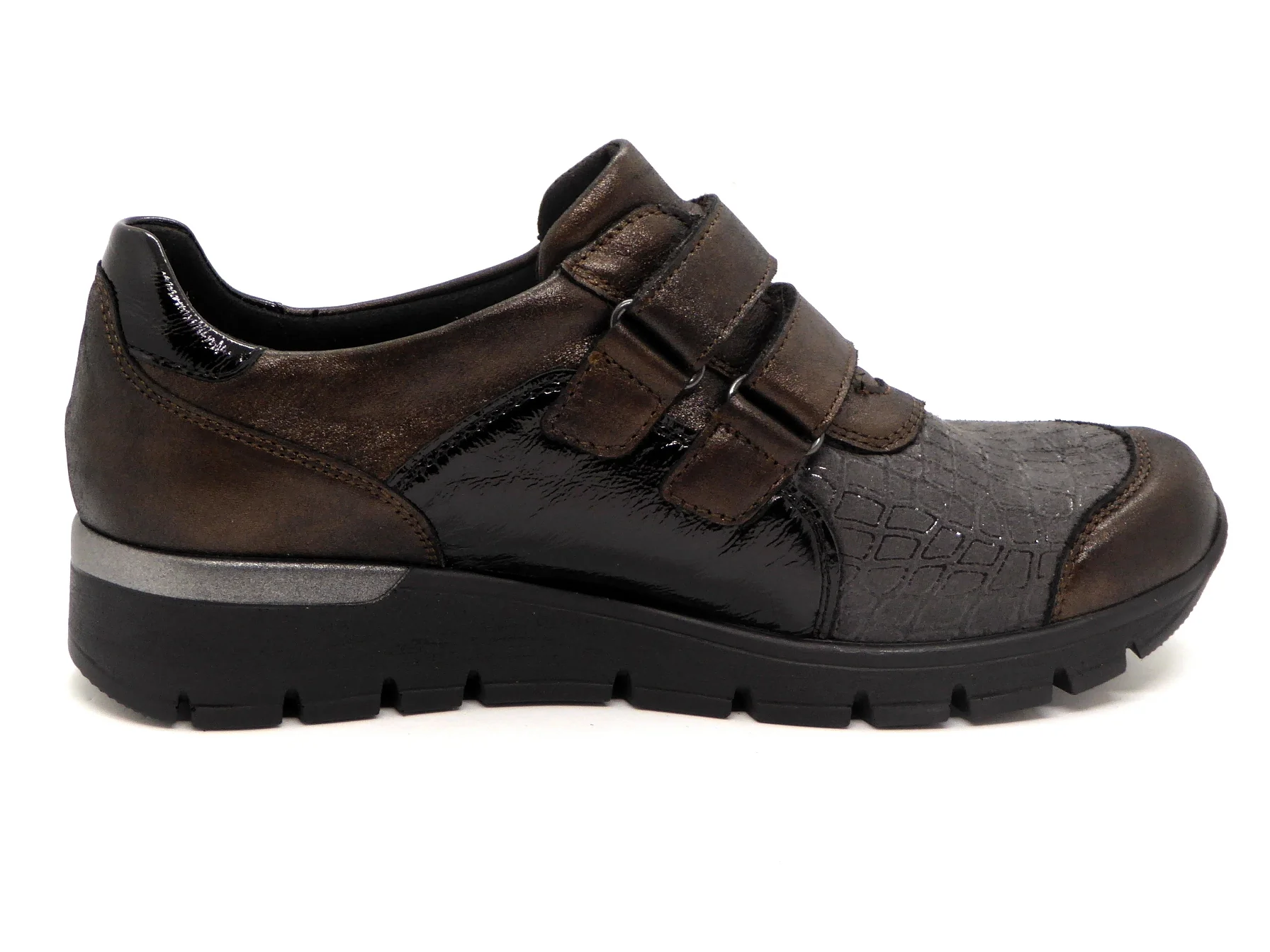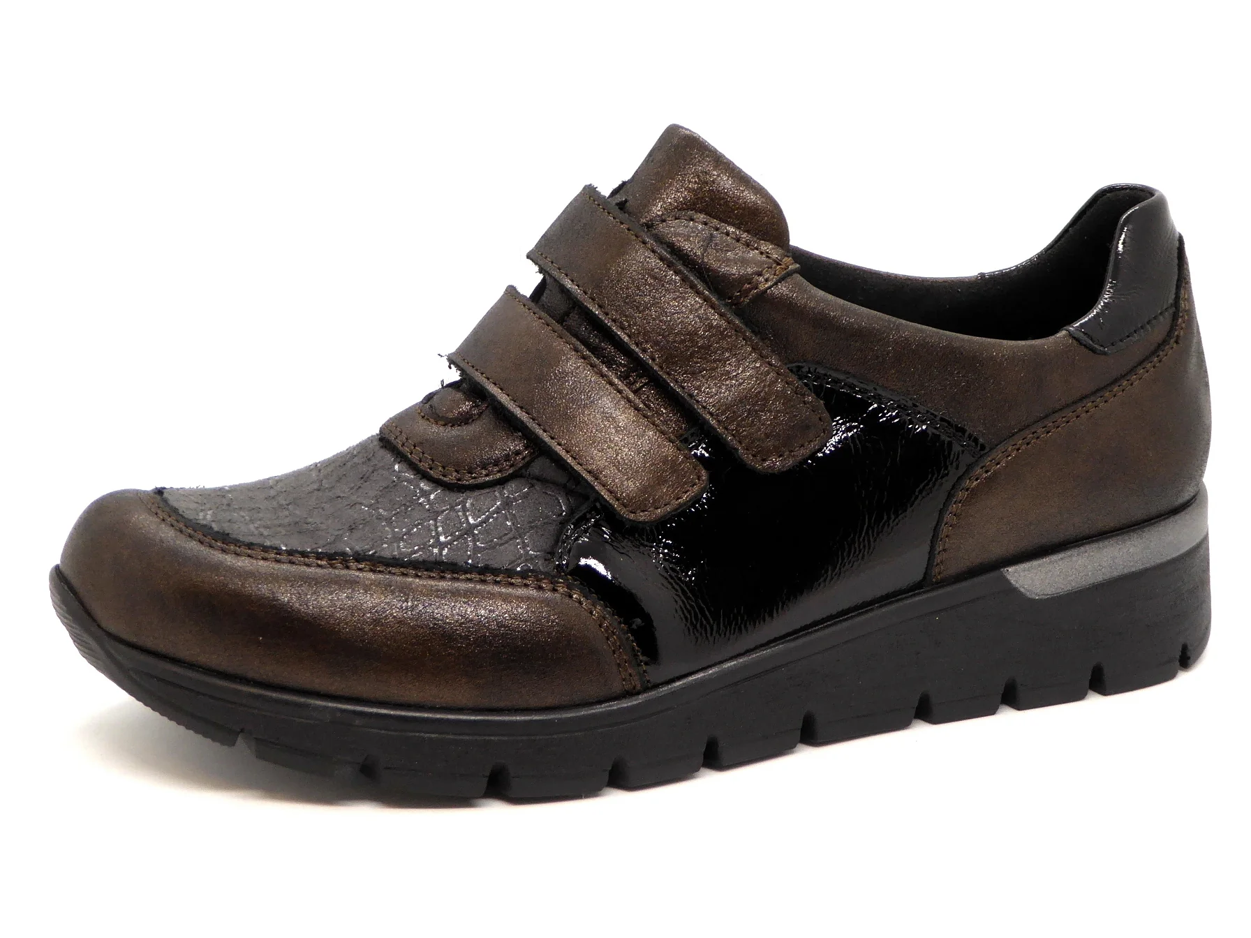 Waldläufer comfortabele dames klittenbandschoen uit de serie OrthoTritt (Soft) uitgevoerd in een combinatie van nubuck en stretch materiaal. Door het rekbaar stretch bovenmateriaal is deze schoen ideaal voor voetproblemen zoals hallux valgus, hamertenen en andere knobbels. De 2 klittenbanden zorgen ervoor dat de schoen eenvoudig aan- en uit kan worden getrokken en biedt de voet stevigheid. De voering is van textiel. De schoen heeft een uitneembaar voetbed, dus ook geschikt voor losse inlegzolen. Dit model is gemaakt in een brede leest wijdte K (leest K-Ramona) en heeft een lichtgewicht PU keilzool dat bijdraagt aan een geweldig loopcomfort.