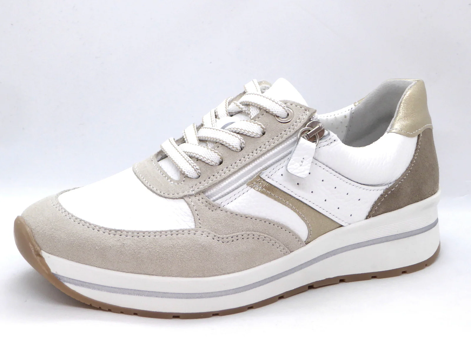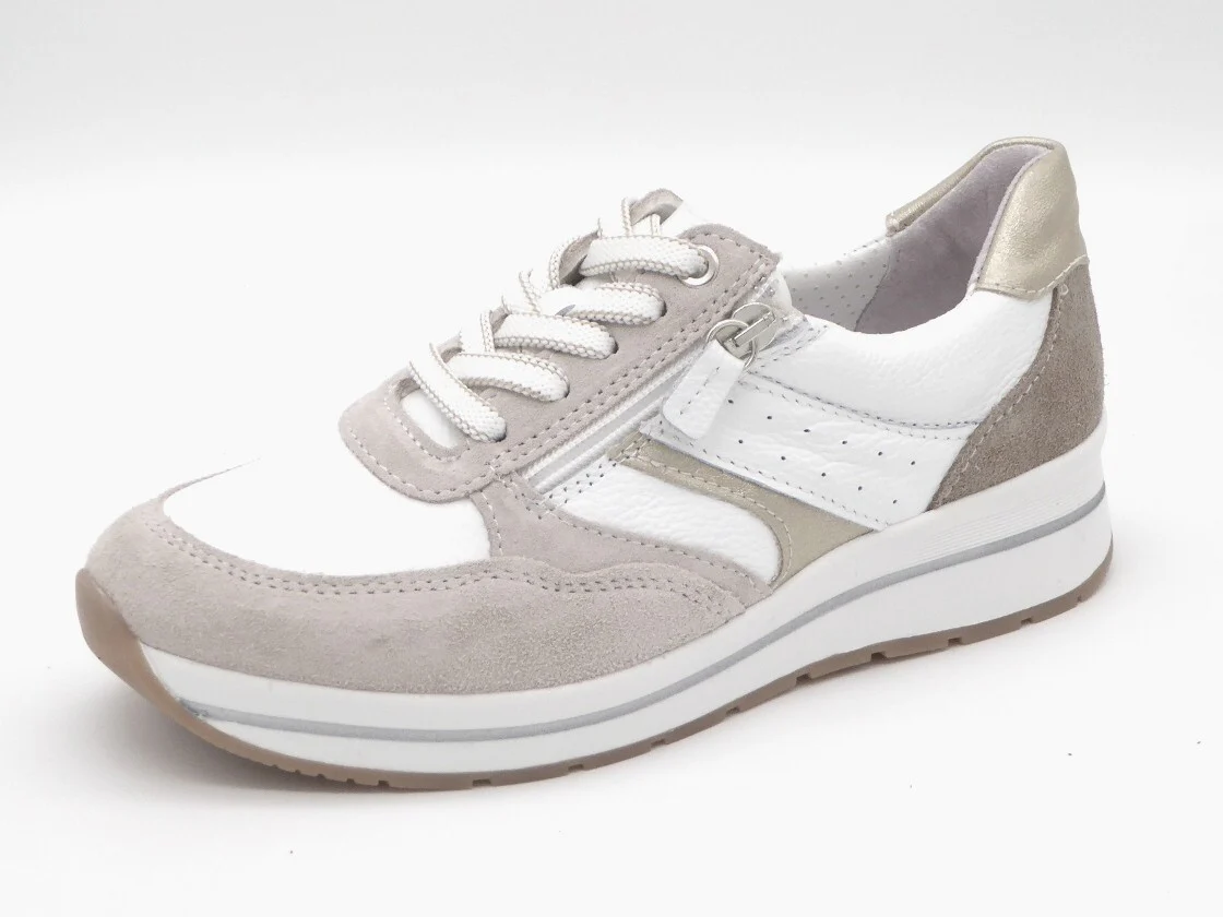 Sens sportieve dames sneaker, uitgevoerd in een combinatie van diverse leersoorten. De sneaker heeft een veters en een rits die je extra instapruimte geeft. De voering is van textiel. De schoen heeft een uitneembaar voetbed dat, indien nodig, vervangen kan worden door losse inlegzolen. Dit model is gemaakt in een iets bredere leest wijdte H en heeft een sportieve rubberzool dat bijdraagt aan een geweldig loopcomfort.