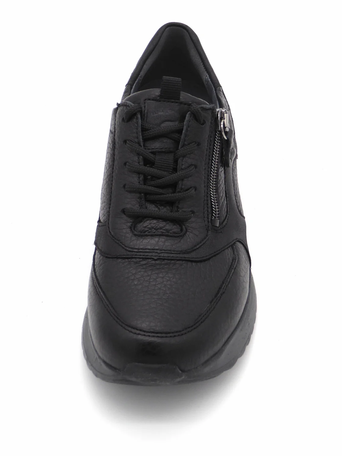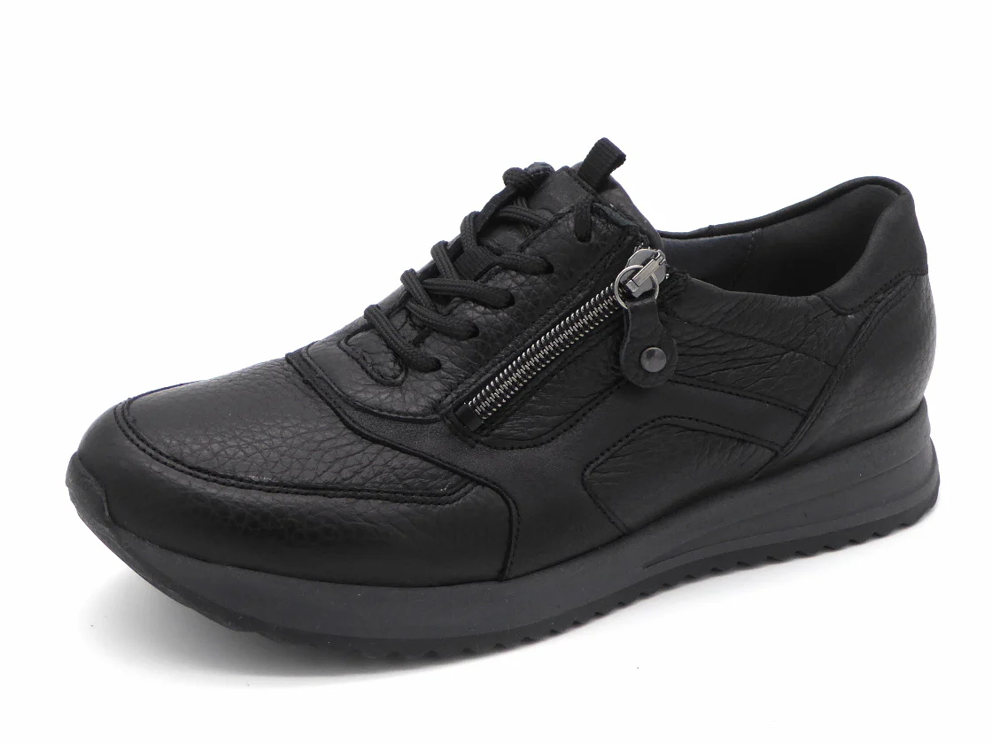 Deze sneaker heeft een vetersluiting en een rits voor een extra ruime instap. De voering is een combinatie van leder en textiel. De schoen heeft een uitneembaar met leer bekleed voetbed en is gemaakt in een iets bredere leest wijdte H (leest H-Vicky). De sneaker heeft een rubberen loopzool voor een optimale grip.