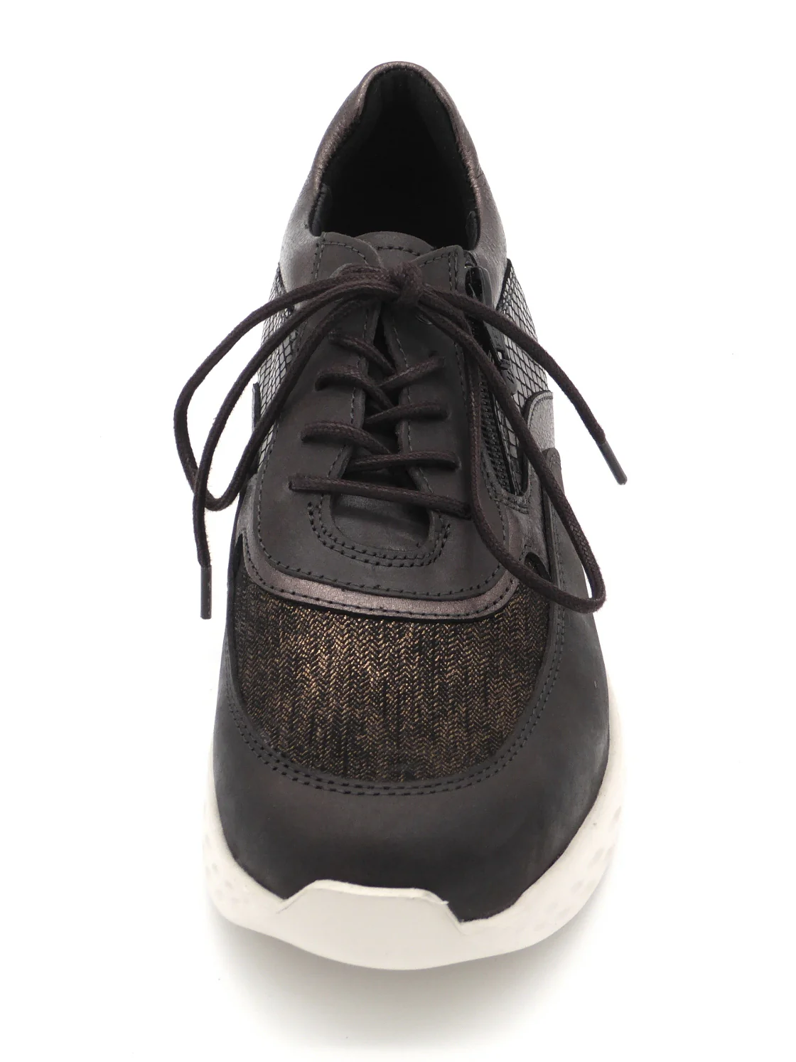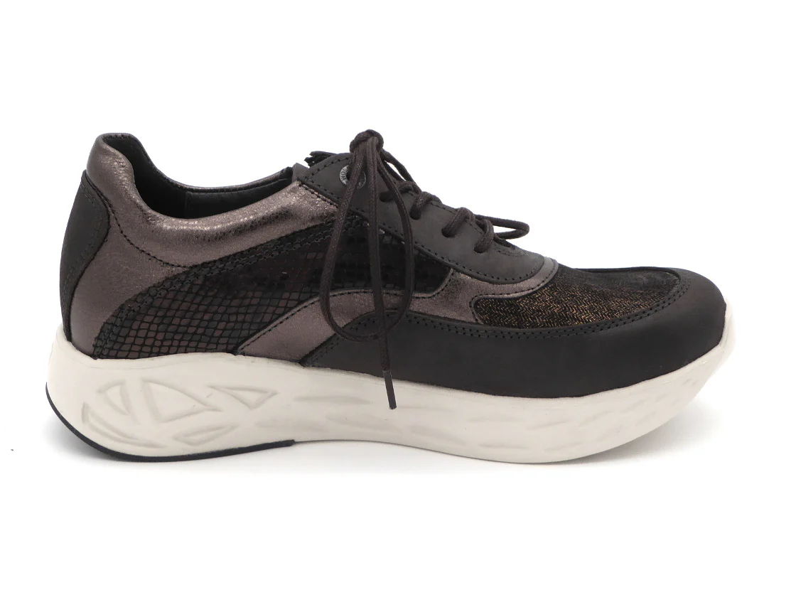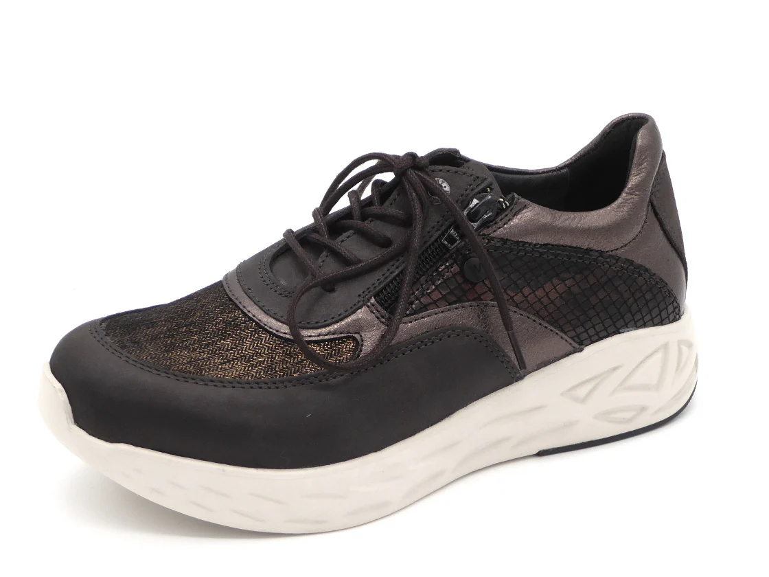 Deze sportieve comfortabele Wolky dames veterschoen, model Vitality S2F heeft een bovenwerk van zacht soepel leer met een bovenblad van stretchmateriaal. Naast de veters heeft dit model ook een rits om het in- en uitstappen te versoepelen en is dus optimaal verstelbaar. De schoen is volledig leer gevoerd en heeft een uitneembaar voetbed dat, indien nodig, vervangen kan worden door losse inlegzolen. De zool is licht en superdempend; ideaal voor vrouwen met hielspoor en eigenlijk voor iedereen want je krijgt zo minder snel vermoeide voeten. Voor loopt de zool iets op. Die oplopende neus zie je veel bij Wolky en die is er niet voor niets, want hierdoor wikkel je je voeten moeiteloos af en dat maakt lopen makkelijker.