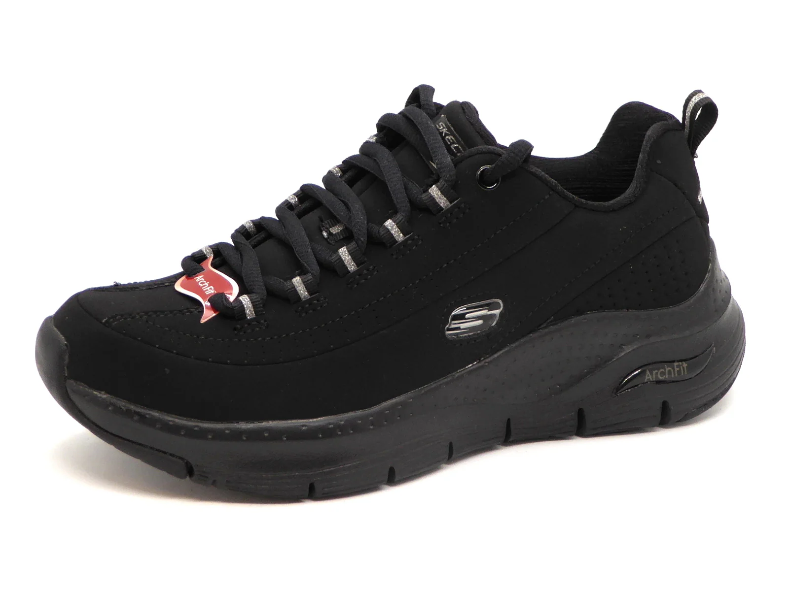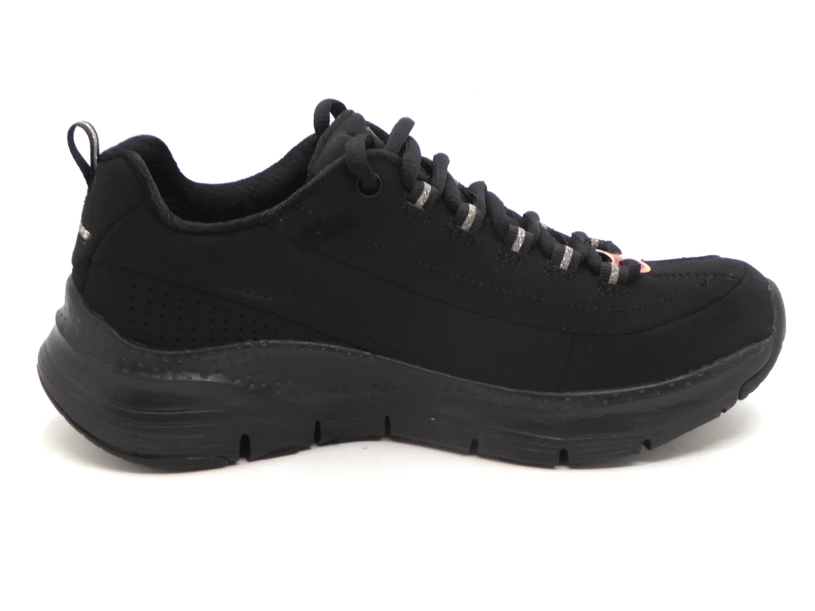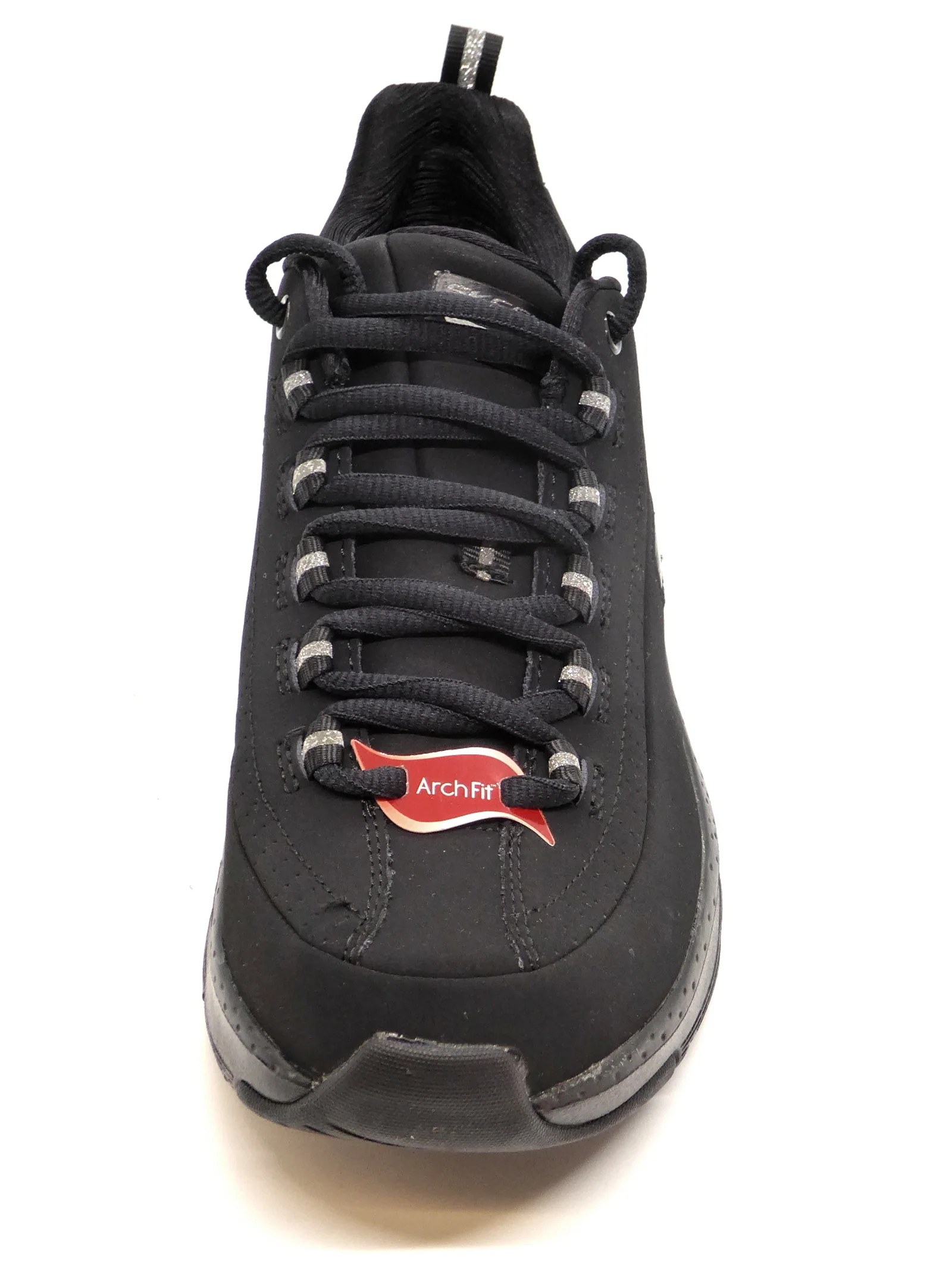 De zwarte Skechers Arch Fit Metro Skyline sneakers bieden jouw voeten het comfort dat ze verdienen. De sneakers zijn gemaakt van nubuckleer en hebben synthetische inzetten voor extra structuur. De zachte voering en binnenzool bestaan allebei uit textiel. De Arch Fit binnenzool zorgt voor uitstekende ondersteuning, zelfs voor de lastigere voeten. De lichte tussenzool garandeert demping bij iedere stap terwijl de flexibele rubberen loopzool grip biedt. Met de vetersluiting pas je gemakkelijk de pasvorm aan, zodat de sneakers goed aansluiten. De zwarte Skechers Arch Fit Metro Skyline sneakers hebben een uitneembaar voetbed.