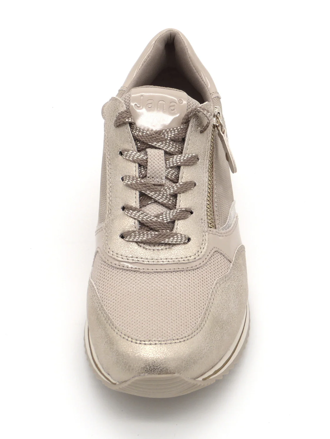 Jana dames sneaker uit de Softline serie, uitgevoerd in synthetisch materiaal met textiel. De voering is van textiel evenals het voetbed, dat niet uitneembaar is. De sneaker heeft veters en ritssluiting voor een makkelijke instap en is gemaakt in wijdte H voor de iets bredere voet. Verder is deze sneaker vervaardigd met 100% vegan, PFI-gecertificeerde materialen voor een duurzame keuze. De schoen heeft een sportieve rubberen loopzool die grip en demping biedt met een dikte van 30 mm.
