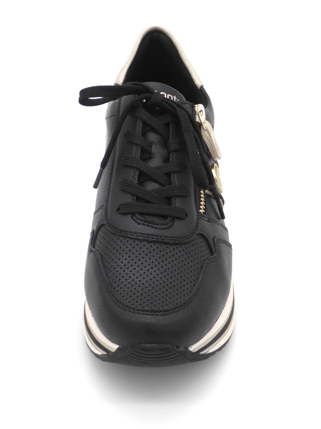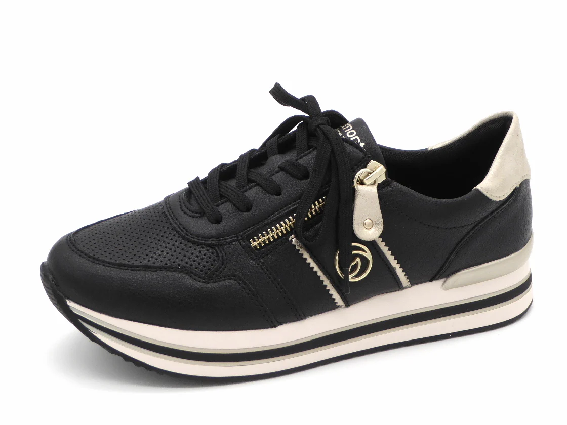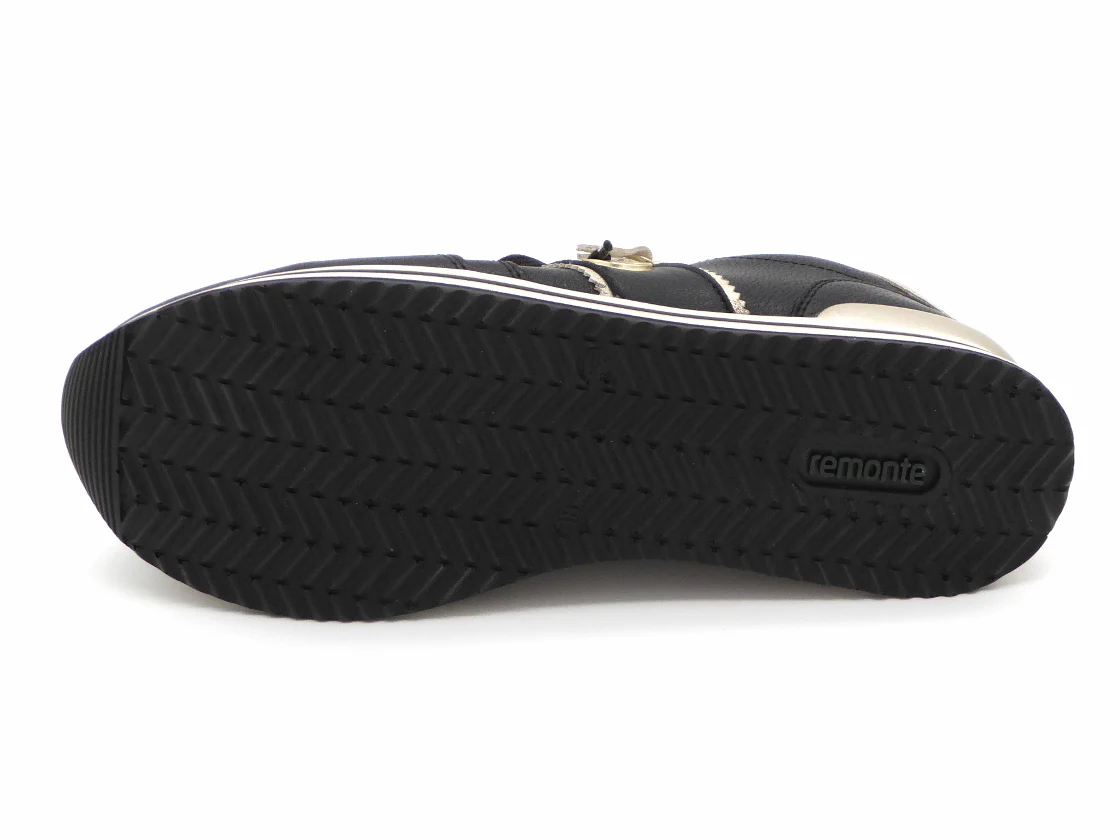 Modische dames sneaker uit de Remonte Soft collectie, uitgevoerd in leer met structuur. De sneaker heeft een vetersluiting en aan de buitenzijde zit een handige rits voor het eenvoudig aan- en uittrekken van de schoen. De voering is van microvelours (textiel). Het zachte voetbed is uitneembaar, dus ook geschikt voor losse inlegzolen. De schoen heeft en lichtgewicht PU-zool.