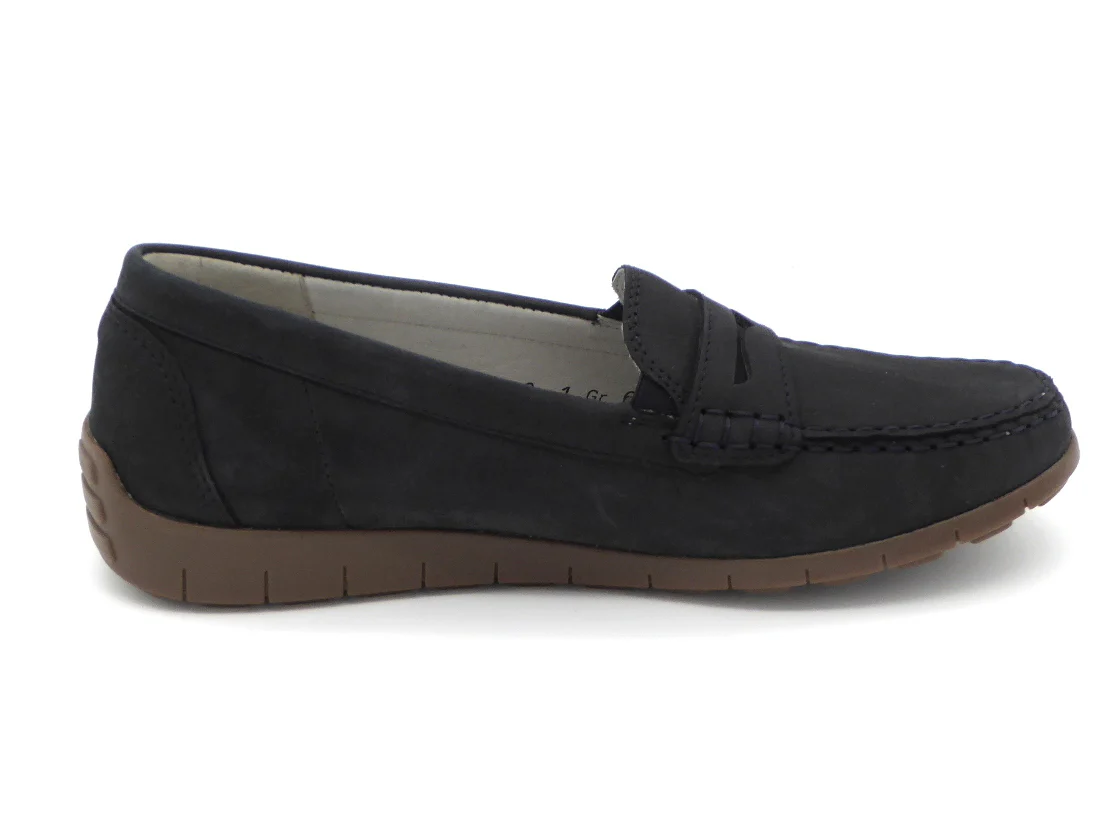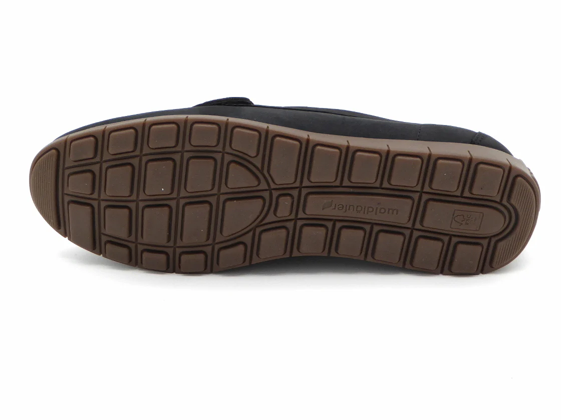 Waldläufer comfortabele mocassin instapper van een aangenaam, hoogwaardig suèdeleer. De binnenkant van de schoen is uitgerust met chroomvrij leer. Het voetbed is uitneembaar, zodat de schoenen ook geschikt is voor het dragen van eigen zolen. De schoen valt normaal en is gemaakt in de iets bredere leest wijdte H (H-Lucy). De zachte zool is van rubber met een hakhoogte van 2 cm.