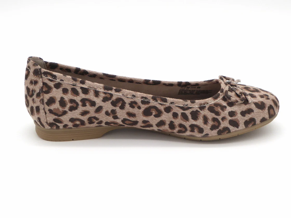 Jana modische instapper/ballerina uit de Softline collectie met een bovenwerk van synthetisch materiaal met panterprint. De voering is van textiel evenals het voetbed, dat niet uitneembaar is. De ballerina is gemaakt in de iets bredere leest wijdte H en heeft een hakhoogte van 15 mm. Deze Jana instapper is vervaardigd met 100% vegan, PFI-gecertificeerde materialen voor een duurzame keuze.