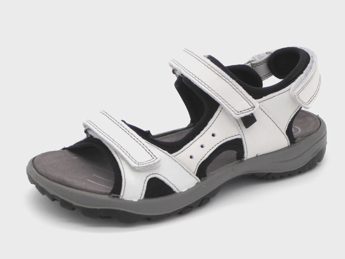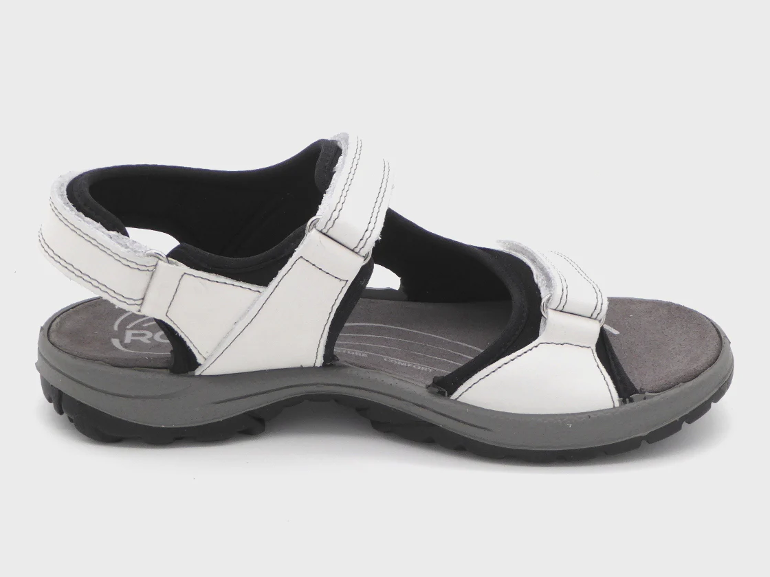 De Rohde dames wandelsandaal model 5380 is uitgevoerd in nubuckleer. De sandaal heeft 3 klittenband sluitingen; op de voorvoet, over de wreef en om de hiel, waardoor je een perfecte pasvorm kan creëren die aansluit op de voet. De voering is van zacht textiel en het voetbed van suède. De sportieve flexibele zool heeft een goede grip.