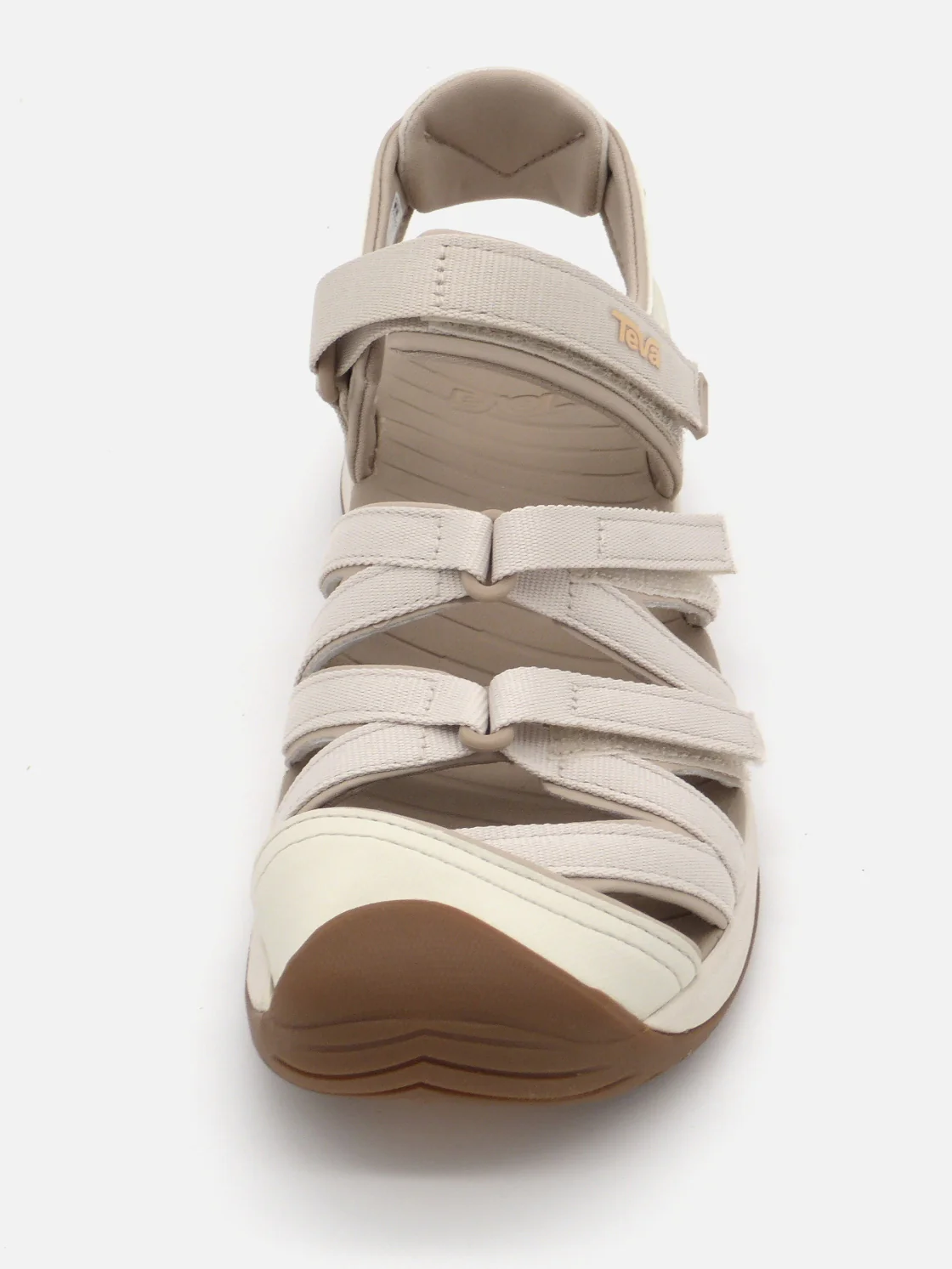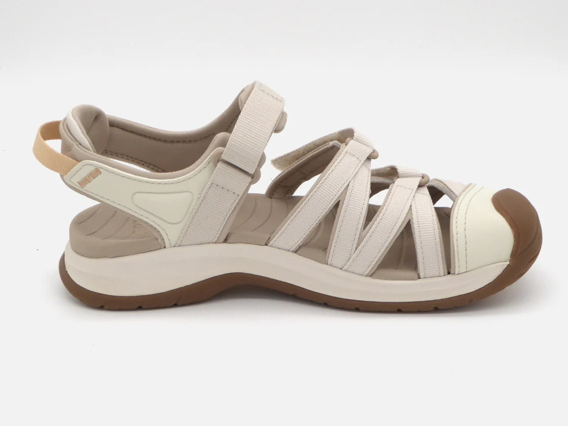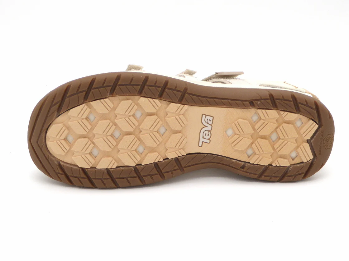 Deze Teva dames sandaal model Tirra Sport is zeer geschikt voor een flinke wandeling! De banden over de voet zijn gemaakt van gerecycled polyester. Dit materiaal is waterbestendig en droogt snel. Met de gemakkelijke klittenbandsluiting trek je de sandaal snel en vlot aan en uit, en kun je de pasvorm perfect afstellen, terwijl het gesloten teenontwerp extra bescherming biedt. e bandjes zijn van 100% REPREVE® gerecyclede polyester en heeft een zachte voering van microvezel voor extra comfort. Dankzij het Lichtgewicht EVA-voetbed geniet je van langdurig comfort en de nylon tussenzool is ontworpen om je voet te stabiliseren en te ondersteunen op ongelijkmatig terrein. Deze sandaal heeft een robuuste Spider Rubber®-buitenzool voor goede grip en bestaat uit 30% gerecyclede EVA bovenzool en 30% gerecyclede rubberen buitenzool.