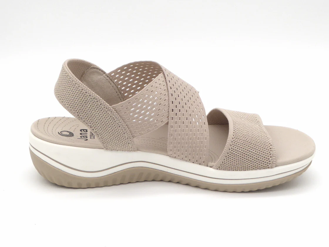 Jana comfortabele sandaal uit de Softline serie met een bovenwerk en voering van textiel. De sandaal heeft een elastische kruisband over de wreef. Het flexibele synthetische voetbed en de iets bredere leest wijdte H zorgen voor meer comfort tijdens het lopen. De sportieve flexibele TR-zool heeft een hakhoogte van 40 mm. Dit model is vervaardigd met 100% vegan, PFI-gecertificeerde materialen voor een duurzame keuze en is machine wasbaar.