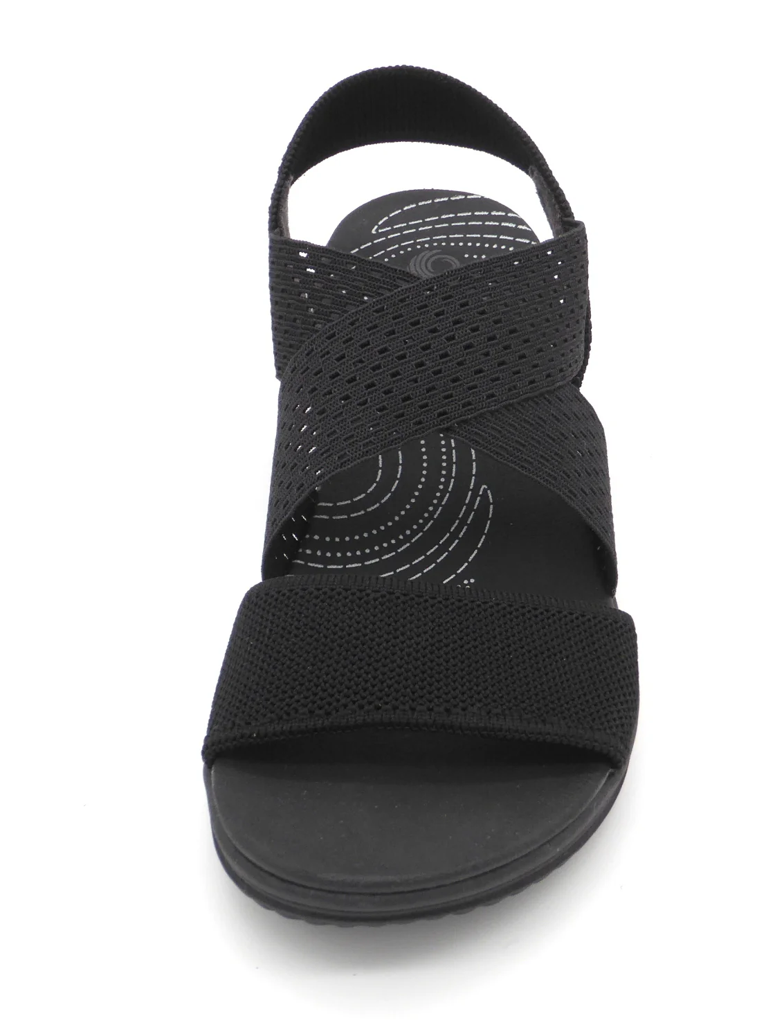 Jana comfortabele sandaal uit de Softline serie met een bovenwerk en voering van textiel. De sandaal heeft een elastische kruisband over de wreef. Het flexibele synthetische voetbed en de iets bredere leest wijdte H zorgen voor meer comfort tijdens het lopen. De sportieve flexibele TR-zool heeft een hakhoogte van 40 mm. Dit model is vervaardigd met 100% vegan, PFI-gecertificeerde materialen voor een duurzame keuze en is machine wasbaar.