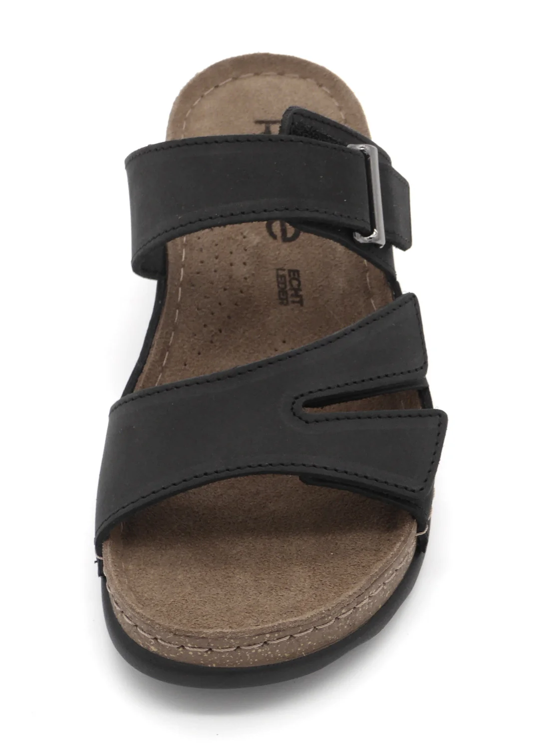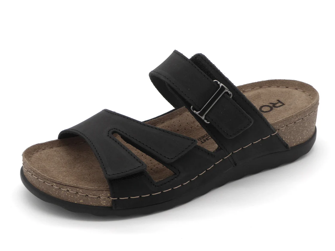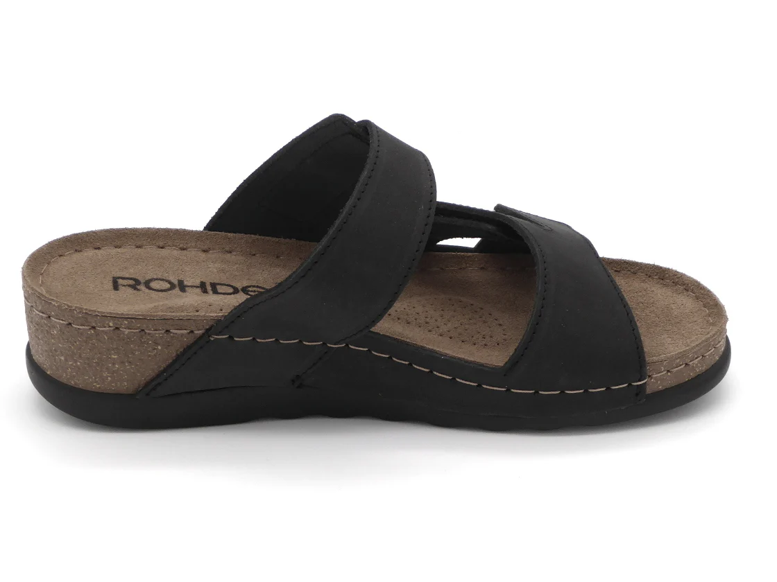 De Rohde dames slipper model 5433 is uitgevoerd in nubuckleer. De voering is ook van leer. Deze slipper met een uitstekende pasvorm heeft een brede band op de voorvoet met 2 klittenband sluitingen en 1 brede band met klittenbandsluiting en siergesp die ervoor zorgen dat de slipper goed aansluit om de voet. Het zachte voetbed van suède is niet uitneembaar. De flexibele zool van rubber met een hakhoogte van 2,5 cm zorgt voor een optimaal loopcomfort.