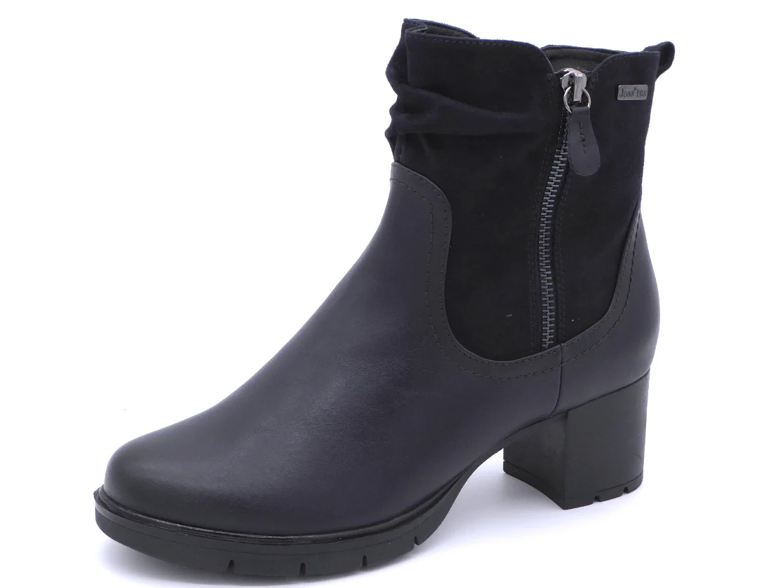 Jana sierlijke dames enkellaars met rits uit de Softline serie. Het bovenwerk is gemaakt van mooi imitatieleer en textiel met aan de buitenzijde een sierrits. De zachte warme voering en het TEX-membraan houden de voeten warm en droog. Deze schoen is gemaakt in de iets bredere leest wijdte H en heeft een profielzool met een blokhak van 55 mm. Deze Jana schoen is vervaardigd met 100% vegan, PFI-gecertificeerde materialen voor een duurzame keuze.