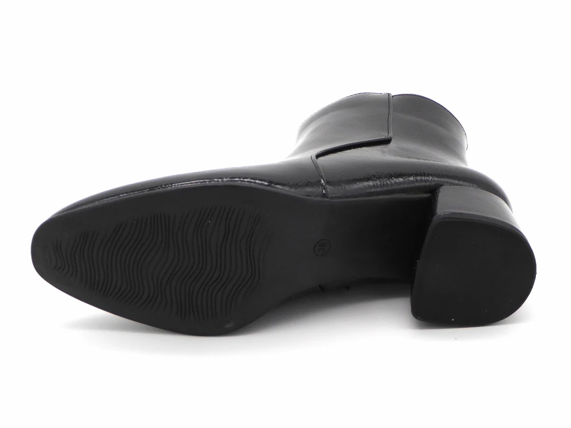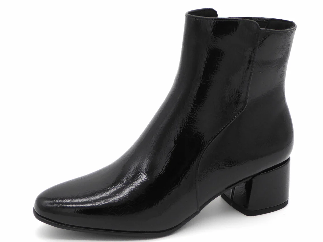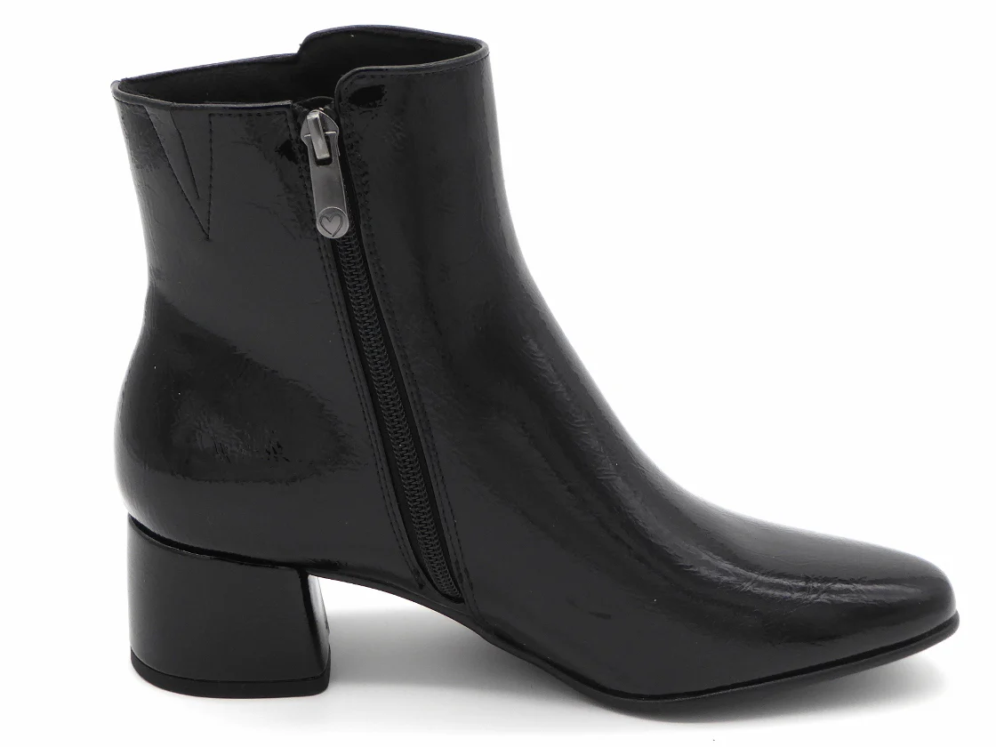 Marco Tozzi elegante dames enkellaars met rits. Het bovenwerk is van synthetisch materiaal in lak. De voering is van textiel met een zacht ‘Feel Me’ foam-voetbed dat zorgt voor een fijne demping bij iedere stap. Het voetbed is niet uitneembaar. De zool heeft een 40 mm hoge beklede blokhak.