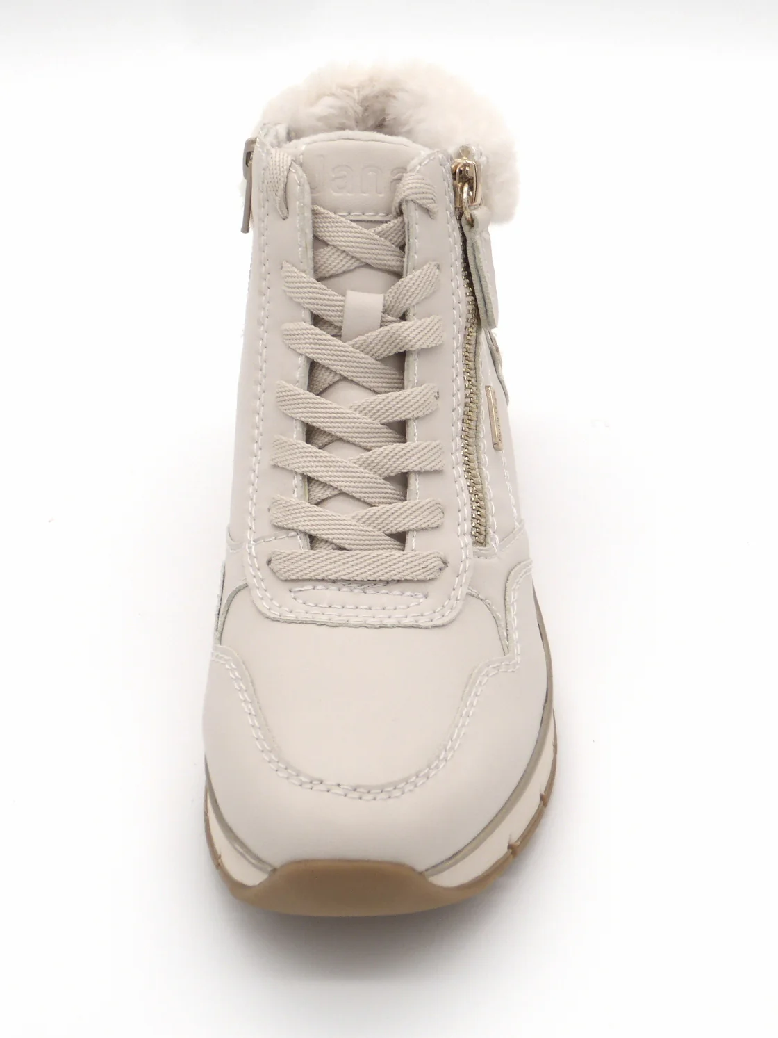 Jana sportieve dames enkelboot uit de Softline serie, uitgevoerd in hoogwaardig imitatieleer (synthetisch) en textiel. De schoen heeft veters en een rits voor een makkelijke instap. Aan de buitenzijde zit een sierrits. De zachte warme voering en het TEX-membraan houden de voeten warm en droog. Het Soft-Sense voetbed is verwisselbaar. Dit model is gemaakt in wijdte H voor de iets bredere voet en heeft een sportieve loopzool. Deze Jana schoen is vervaardigd met 100% vegan, PFI-gecertificeerde materialen voor een duurzame keuze.