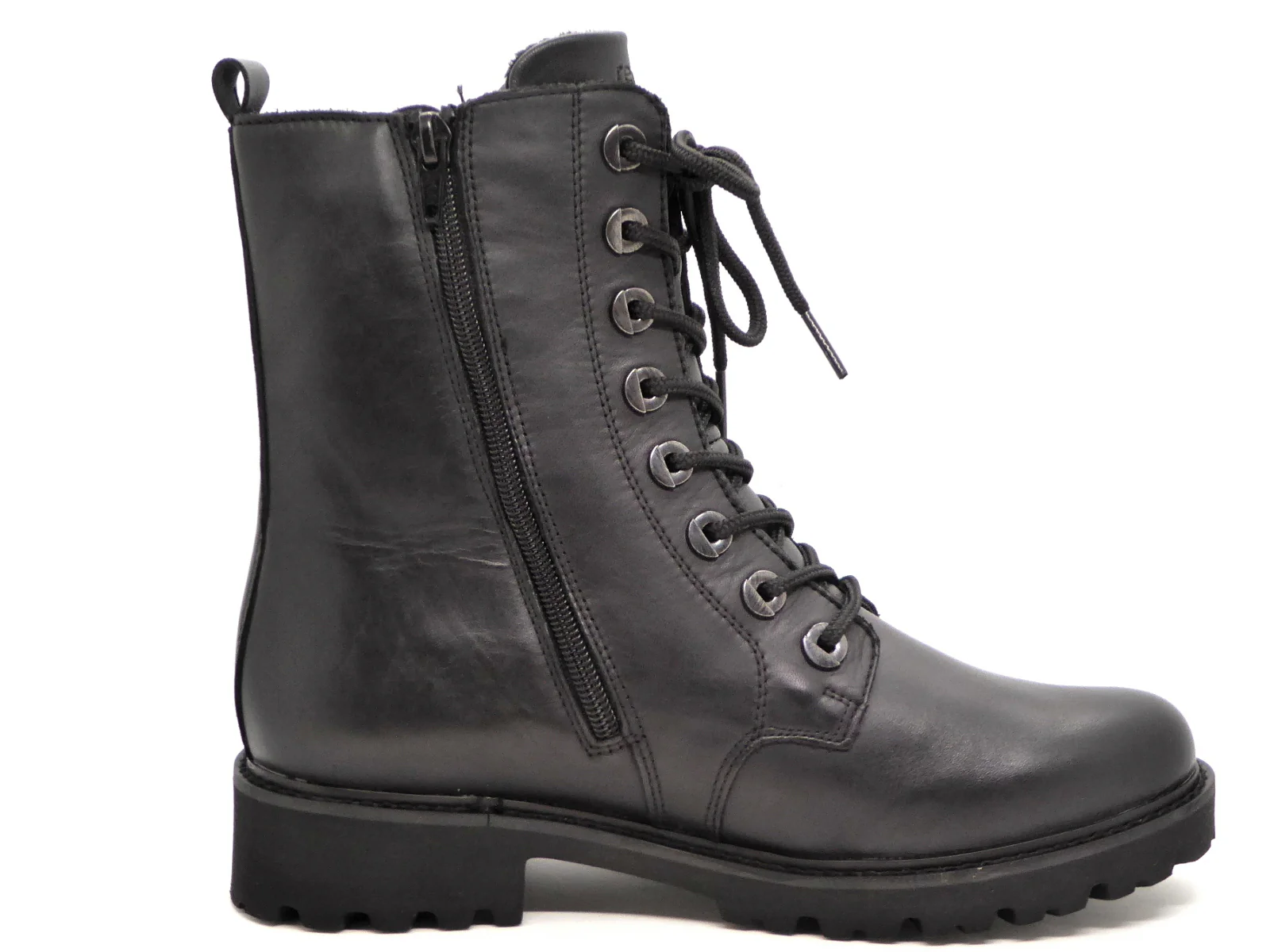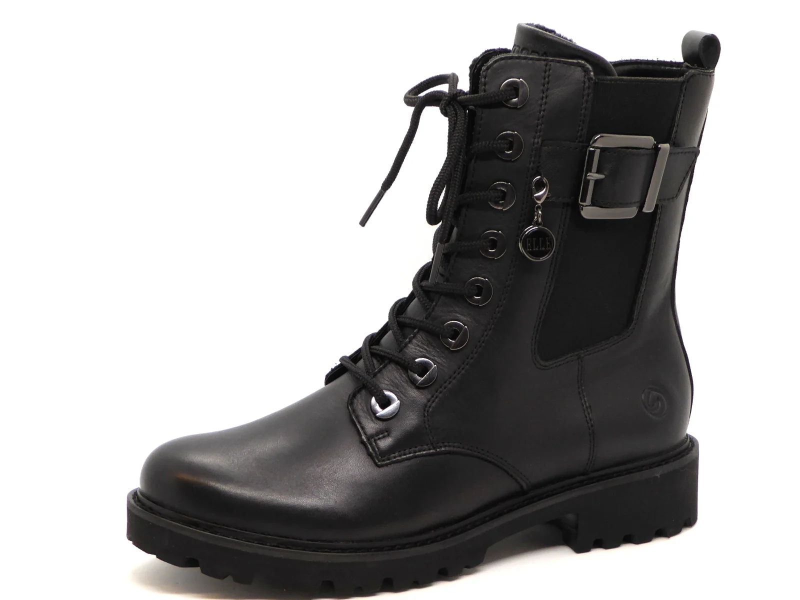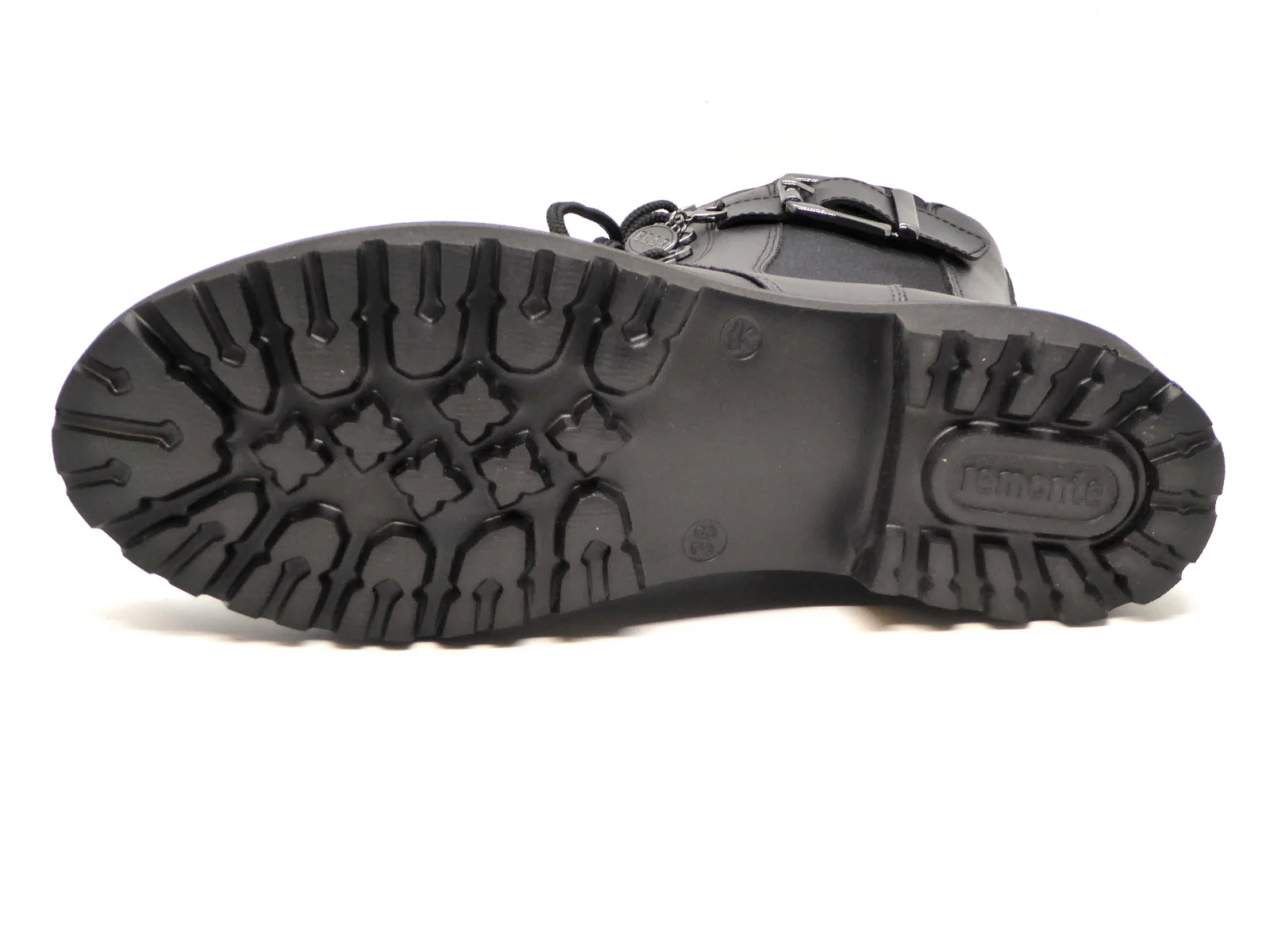 Remonte comfortabele veterboot van een aangenaam, hoogwaardig leer met aan de buitenzijde een elastieken inzet met grote siergesp. De veters en rits zorgen ervoor dat de schoen gemakkelijk aan- en uit kan worden getrokken. De voering is van zacht warm textiel. De zachte uitneembare binnenzool kan, indien nodig, vervangen worden door losse inlegzolen. De schoen heeft een lichte flexibele EVA-loopzool met een stabiele blokhak.