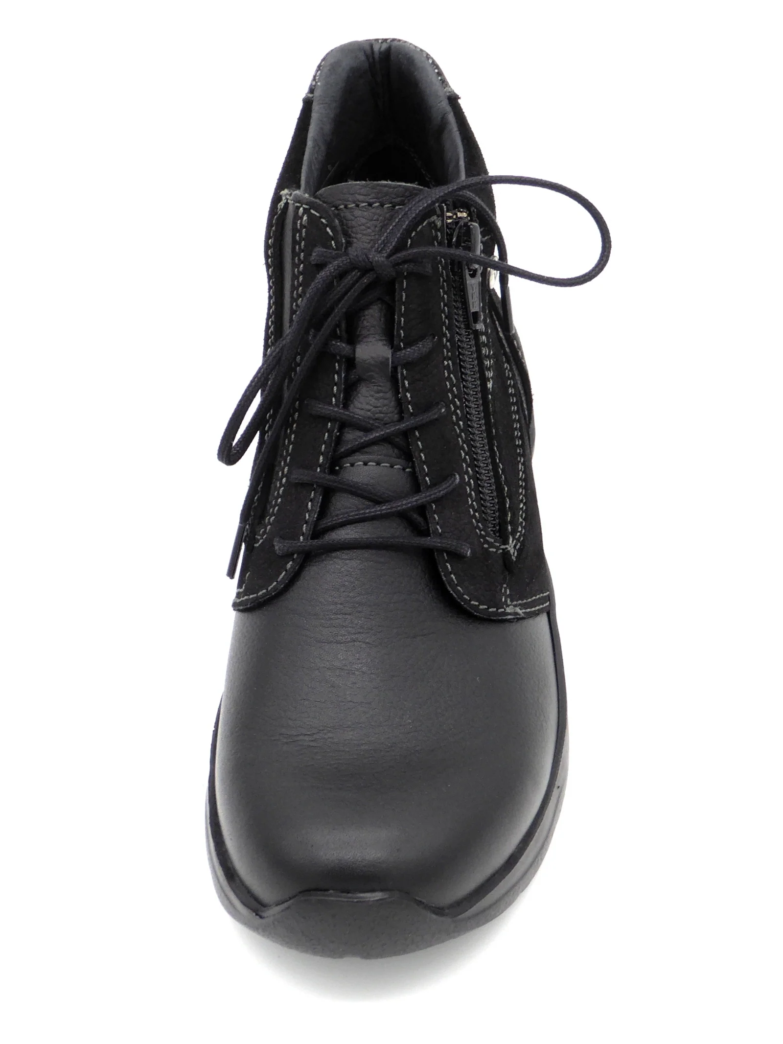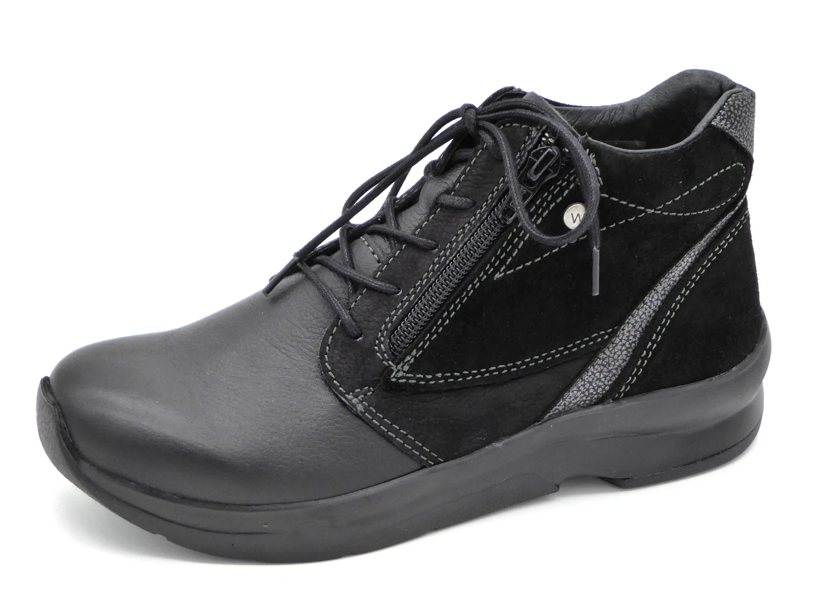 Heerlijk zittende damesboot uit de collectie van Wolky. Model Glacier heeft een zacht en soepel leren bovenwerk. De speciaal ontworpen polsterrand aan de achterkant voorkomt slippen van de hiel. Aan de buitenzijde is een rits geplaatst voor een gemakkelijke in- en uitstap en is optimaal verstelbaar. De voering is, zoals je van Wolky gewend bent, van leer. Het met leer omtrokken voetbed is uitneembaar, dus ook geschikt voor losse inlegzolen. De schoen heeft een flexibele lichtgewicht PU- loopzool.