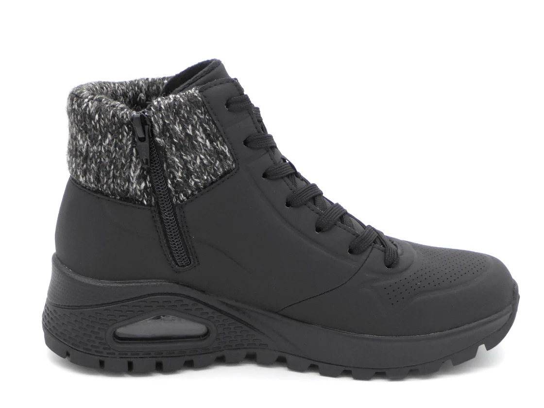 De Skechers Street™ Uno Rugged-Darling Daze is een trendy sneakerboot met een soepele bovenkant van geperforeerd synthetisch materiaal met een gebreide bovenrand. De comfortabele binnenzool en de voering zijn gemaakt van textiel. De sneaker wordt gesloten door middel van een vetersluiting en een rits aan de binnenzijde. Dankzij het dempende voetbed met Air-Cooled Memory Foam® loopt de schoen extra comfortabel. Ook heeft dit voetbed een ventilerende werking. De zichtbare Skech-Air®-tussenzool met luchtdemping biedt uitstekende ondersteuning en schokdemping bij iedere stap. De rubberen zool is flexibel en biedt veel grip. De Skechers Uno Rugged veterboot heeft een vast voetbed.