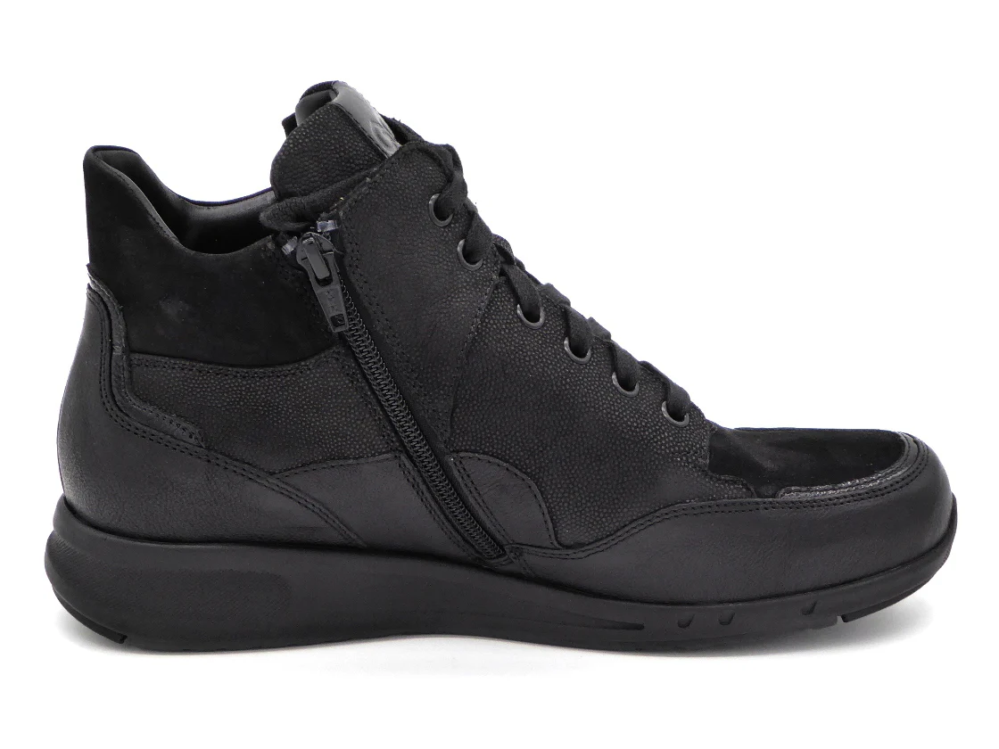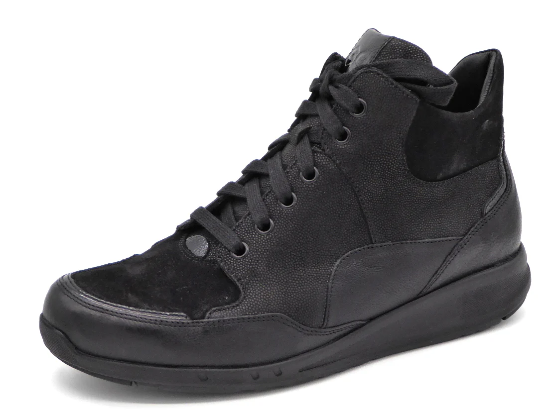 Durea Go comfortabele veterboot, uitgevoerd in een combinatie van diverse leersoorten. Dit model heeft veters in combinatie met een ritssluiting aan de binnenzijde, zo trek je schoen gemakkelijk aan en uit. De voering is van zacht textiel. Het voetbed is uitneembaar, dus ook geschikt voor eigen (steun)zolen. De schoen is gemaakt in een brede leest wijdte K (leest 6885). De lichtgewicht PU-zool is anti-slip en stabiel. Durea GO loopzolen verdelen de druk gelijk over de gehele voet, waardoor staan en bewegen minder energie kost.