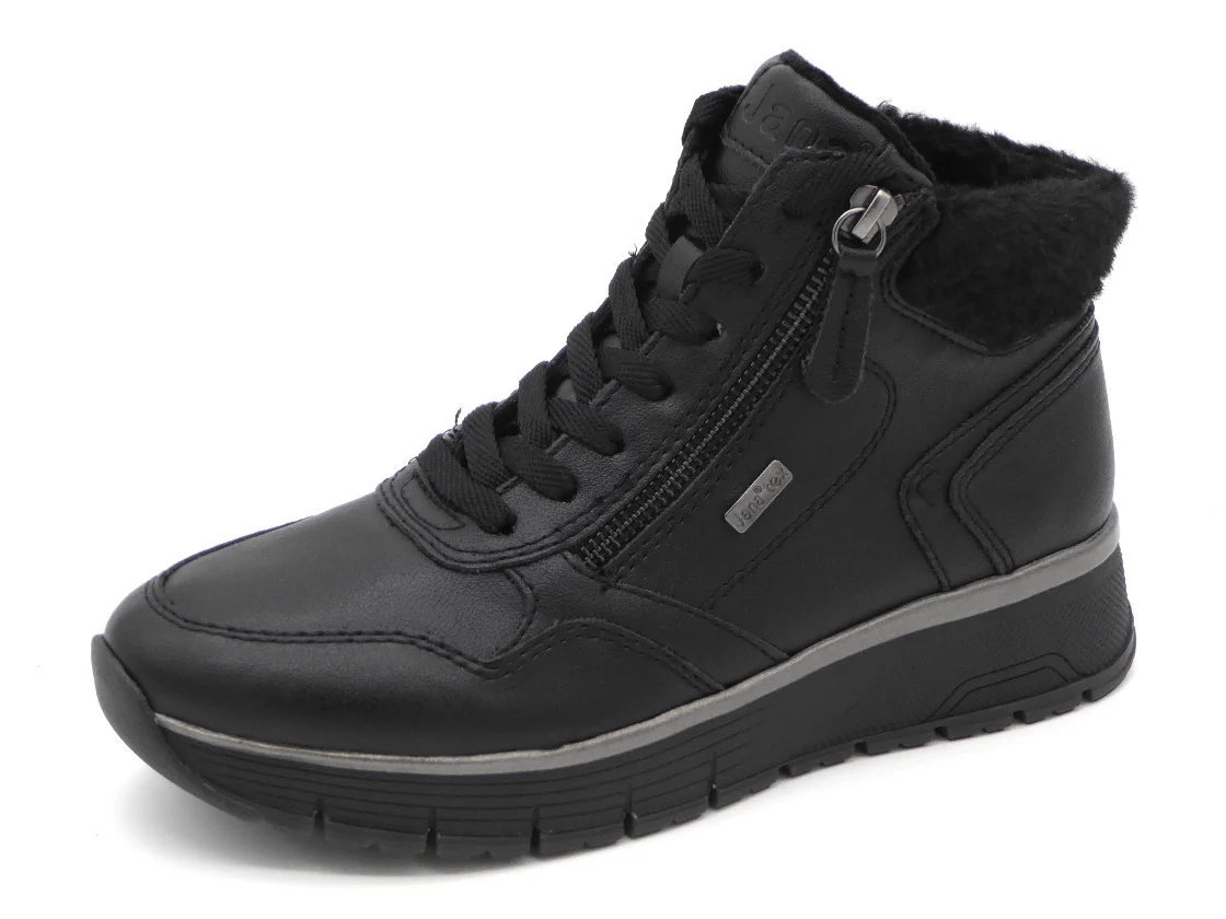 Jana sportieve dames enkelboot uit de Softline serie met een bovenwerk van hoogwaardig imitatieleer (synthetisch) en textiel. De schoen heeft veters en een rits voor een makkelijke instap. De zachte warme voering en het TEX-membraan houden de voeten warm en droog. Het Soft-Sense voetbed is verwisselbaar. Dit model is gemaakt in wijdte H voor de iets bredere voet en heeft een sportieve loopzool. Deze Jana schoen is vervaardigd met 100% vegan, PFI-gecertificeerde materialen voor een duurzame keuze.
