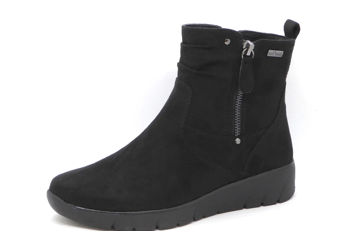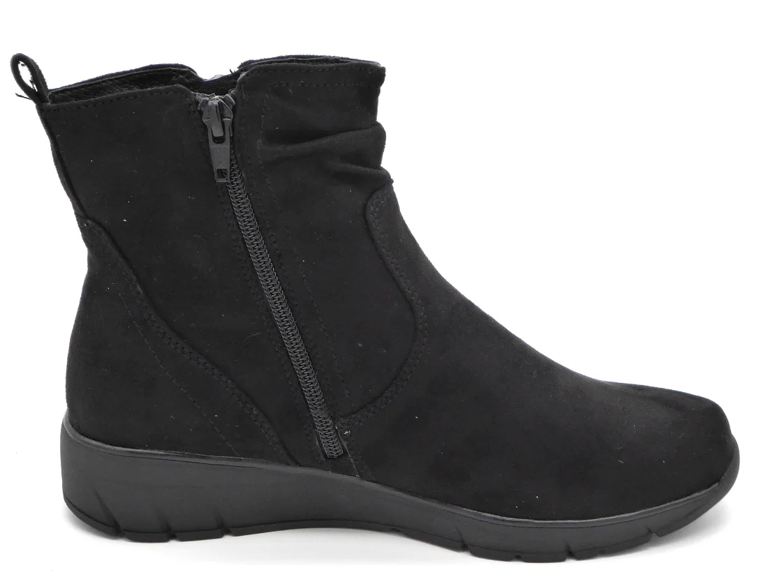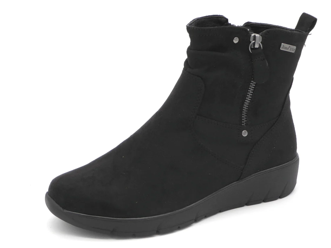 Jana sportieve dames enkellaars met rits uit de Softline serie, uitgevoerd in suèdine (textiel). De zachte warme voering en het TEX-membraan houden de voeten warm en droog. Dit model is gemaakt in wijdte H voor de iets bredere voet en heeft een sportieve loopzool. Deze Jana schoen is vervaardigd met 100% vegan, PFI-gecertificeerde materialen voor een duurzame keuze.
