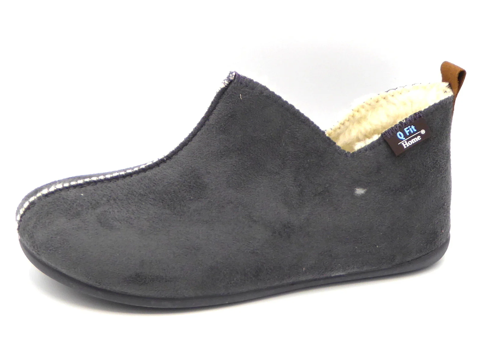 Home Shoes van Q-fit zijn gemaakt van fijne, zachte natuurlijke materialen. Lekker warm met bont gevoerd voor een comfortabel draagcomfort. Uitgevoerd in een leuk modern uiterlijk van imitatiesuède en voorzien van een stevige zool die ook naar buiten kan. Deze pantoffel heeft een uitneembare inlegzool.
