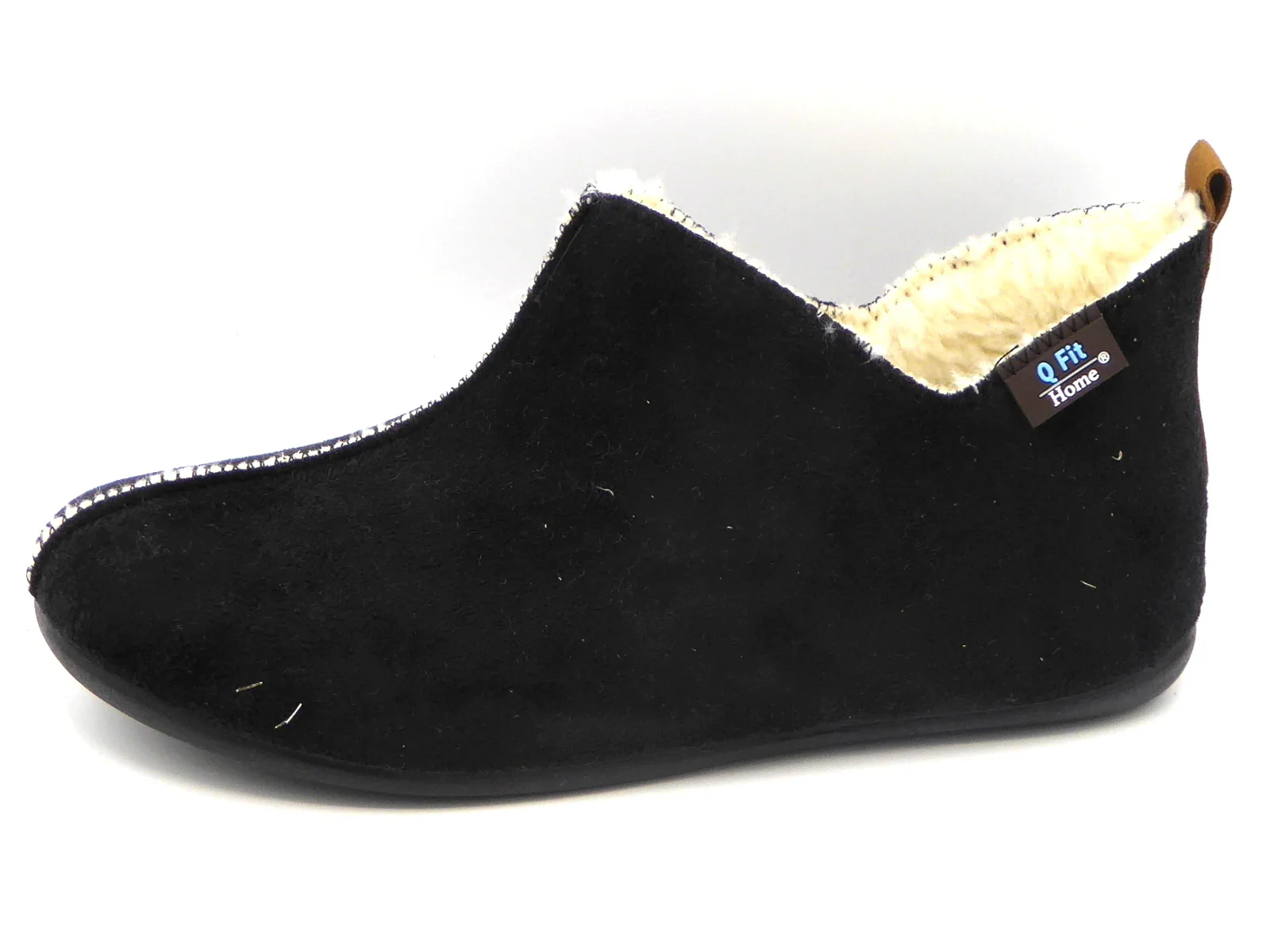 Home Shoes van Q-fit zijn gemaakt van fijne, zachte natuurlijke materialen. Lekker warm met bont gevoerd voor een comfortabel draagcomfort. Uitgevoerd in een leuk modern uiterlijk van imitatiesuède en voorzien van een stevige zool die ook naar buiten kan. Deze pantoffel heeft een uitneembare inlegzool.