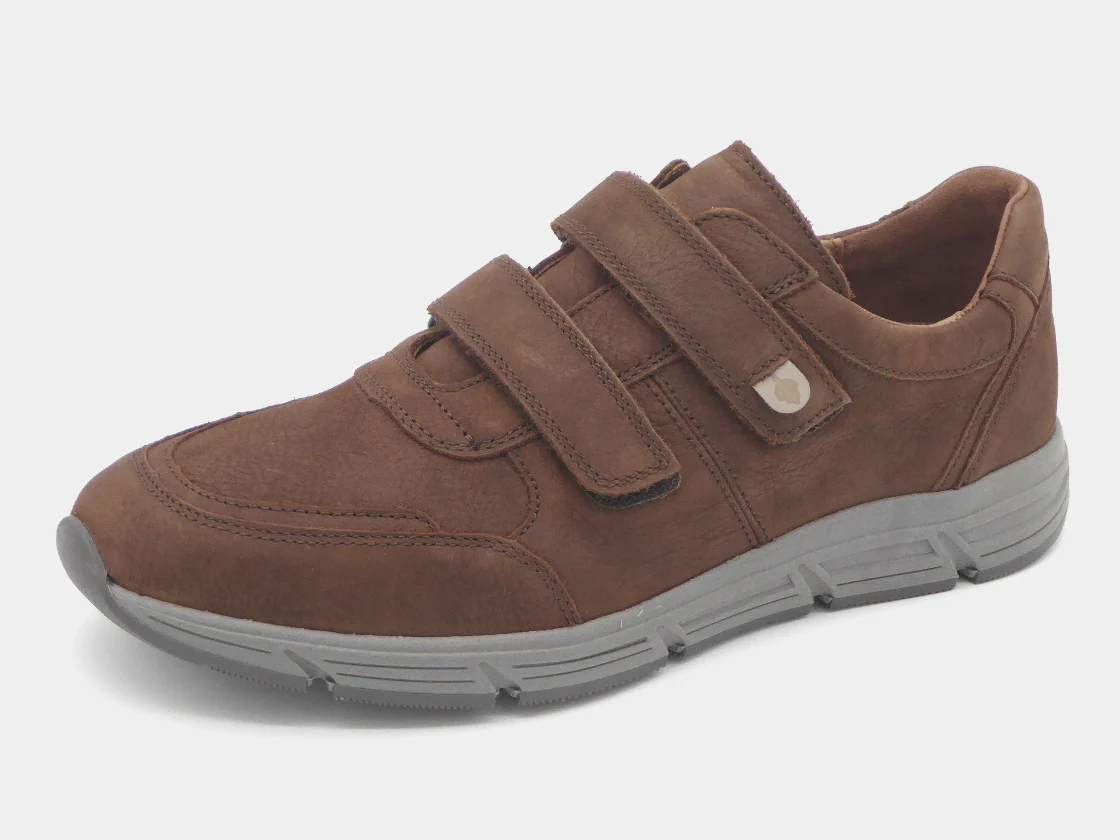 Waldläufer comfortabele herenschoen met 2 klittenbandsluitingen van een aangenaam, hoogwaardig nubuckleer. Het klittenband zorgt ervoor dat de schoen eenvoudig aan- en uit kan worden getrokken en biedt de voet stevigheid. De binnenkant van de schoen is uitgerust met chroomvrij leer in combinatie met textiel. Deze klittenbandschoen heeft een uitneembaar voetbed en is gemaakt in een iets bredere wijdte H (leest Haslo). De gripvaste zool is van rubber.