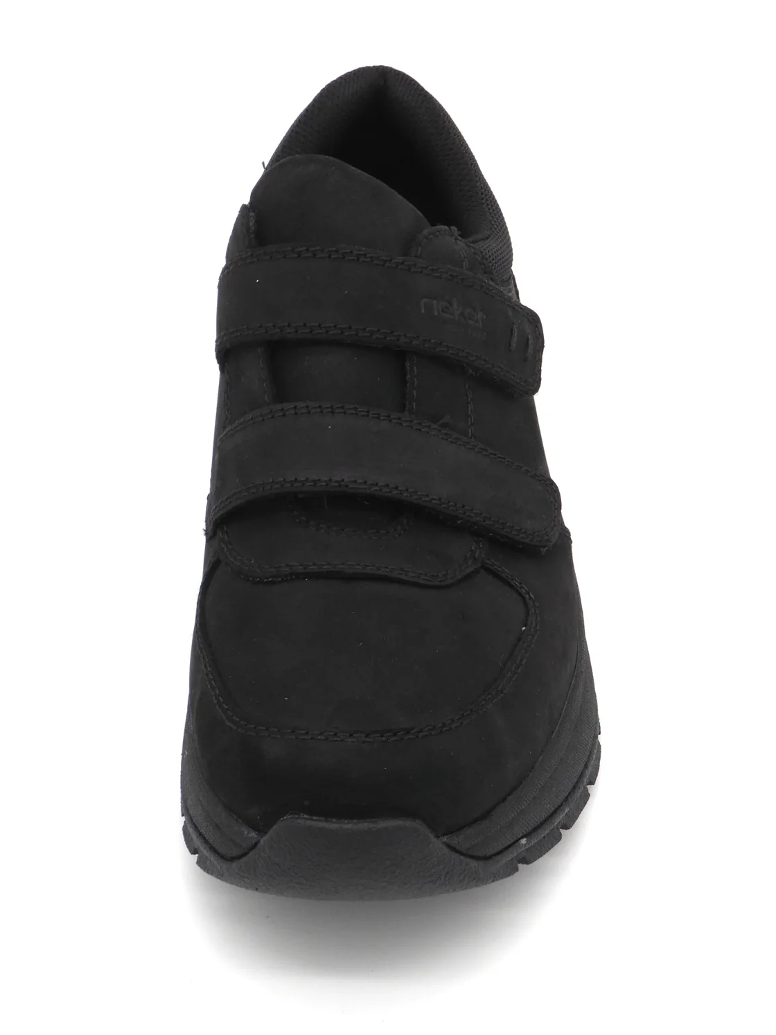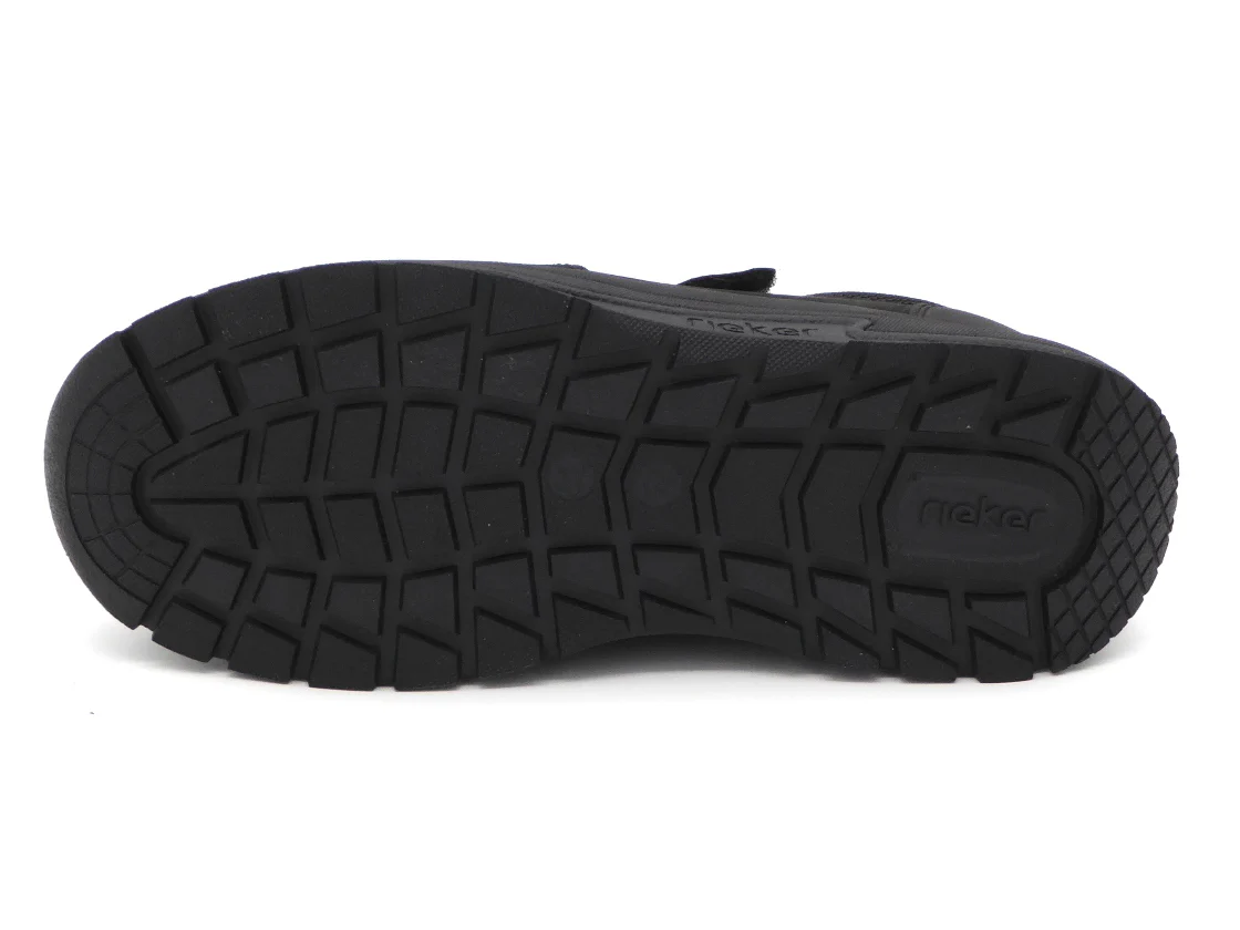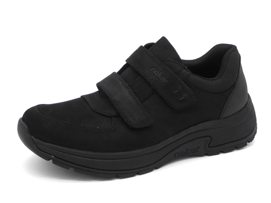 Rieker heren klittenbandschoen, uitgevoerd in nubuckleer met synthetische mesh-inzetstukken. Deze schoen heeft 2 klittenbandsluitingen voor een gemakkelijke instap. Ook kan de strakheid van de schoen zo worden aangepast. De voering is van zacht textiel met een uitneembare inlegzool dat, indien nodig, vervangen kan worden door losse inlegzolen. Door het ingebouwde anti-stress systeem heeft deze schoen een uitstekende comfort, flexibiliteit en schokdemping. De schoen heeft een soepele PU-zool en is gemaakt in een brede leest wijdte H.