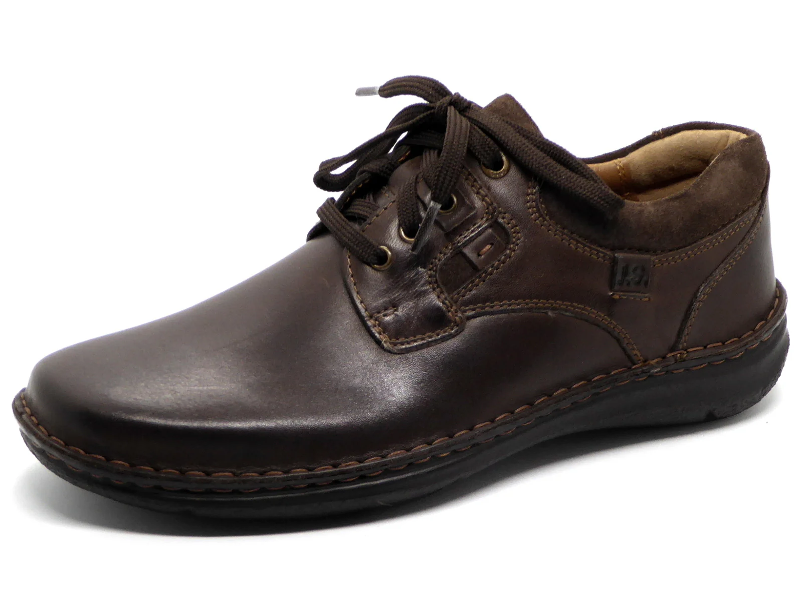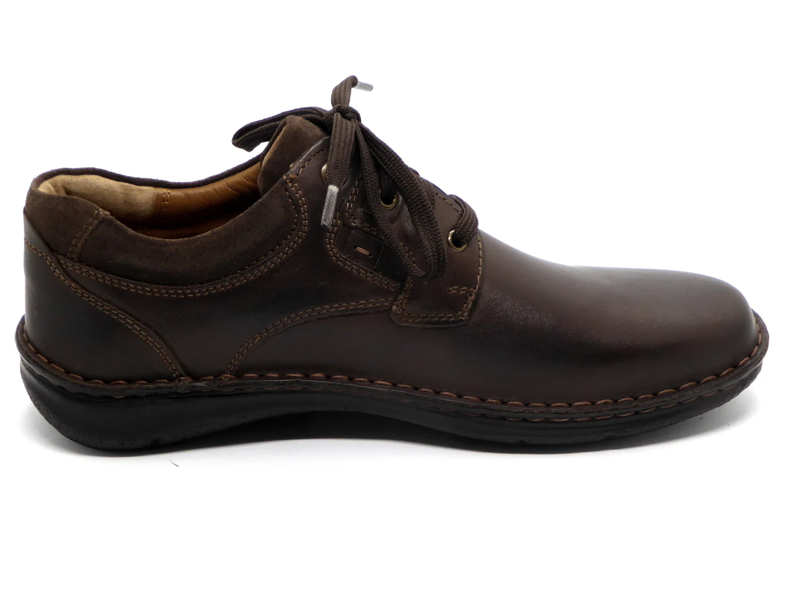 Josef Seibel heren veterschoen uitgevoerd in een volledig glad leren bovenwerk. Dit model Anvers 36 is een derby veterschoen met een leren voering en een met leer beklede schuimrubberen binnenzool, die uitneembaar is. Dit model is gemaakt in een brede leest wijdte H. Deze schoen heeft een bijpassende flexibele donkerbruine PU loopzool.