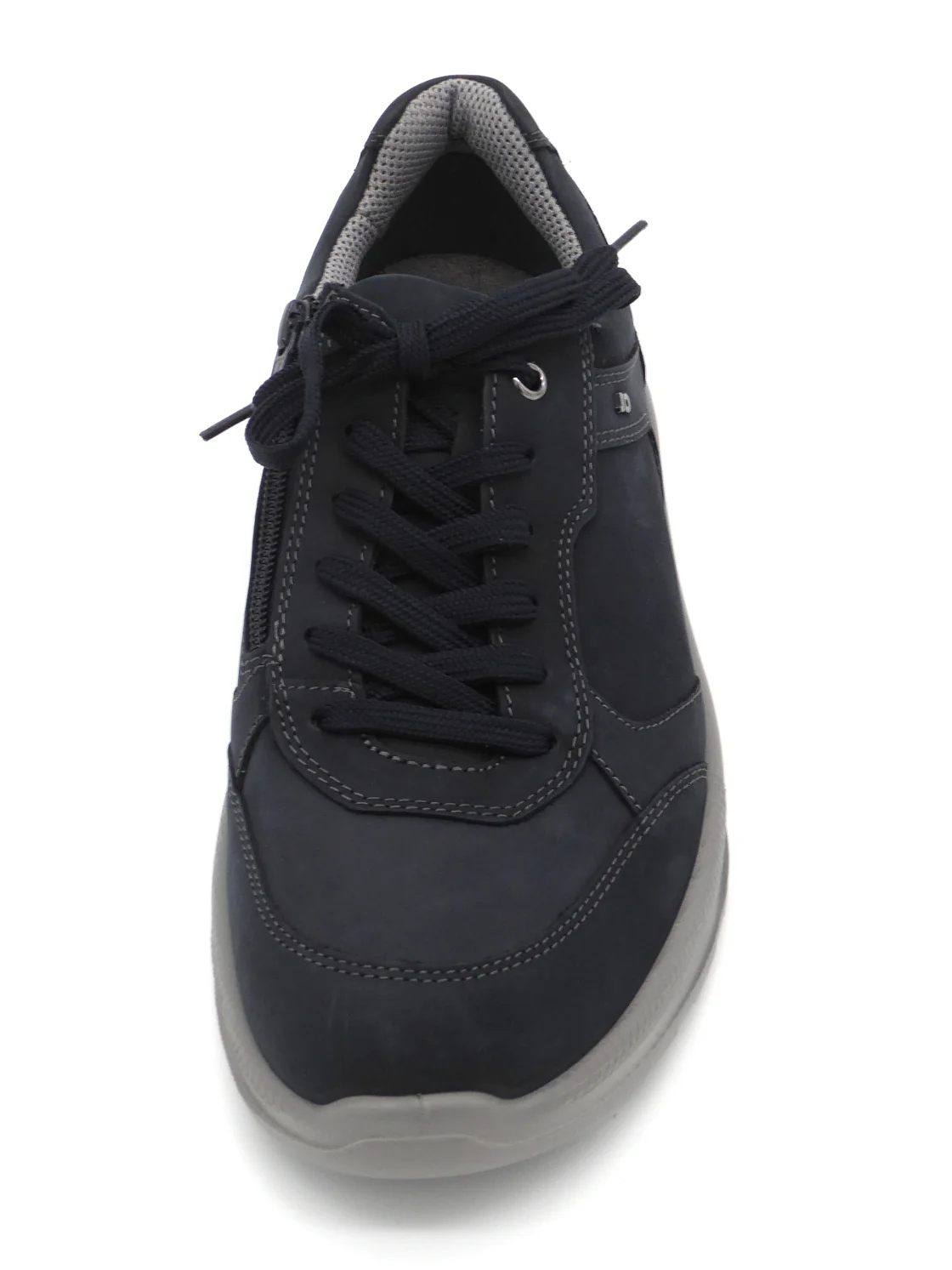 Jomos comfortabele heren sneaker met een bovenwerk van nubuck leer. De veters en de rits zorgen ervoor dat de schoen eenvoudig aan- en uit kan worden getrokken en biedt de voet stevigheid. De voering en binnenzool zijn van textiel. Het Memory-Com voetbed is uitneembaar en kan, indien nodig, vervangen worden door losse inlegzolen. De sportieve loopzool is licht en soepel. Dit model is gemaakt in een iets bredere leest wijdte H.