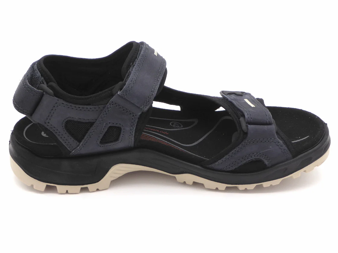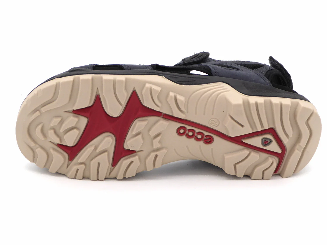 Door het veelzijdige ontwerp is de stevige Ecco Offroad-sandaal perfect voor actieve buitenactiviteiten. Het bovenwerk is van zacht nubuckleer met een voering van neopreen voor een zachte, comfortabele pasvorm. De sandaal kan op drie plekken worden aangepast d.m.v. klittenband voor een nauwkeurige pasvorm. Lichtgewicht gegoten EVA-voetbed met zachte microvezelbekleding voor ultieme demping en superieure stabiliteit. De direct geïnjecteerde PU-tussenzool zorgt voor langdurige demping en een uitstekend loopcomfort en de RECEPTOR®-technologie voor uitstekende stabiliteit en dynamische ondersteuning. De rubberen loopzool met een anti-slipprofiel biedt een uitstekende grip op gevarieerde terreinen. Niet geschikt voor gebruik in water.