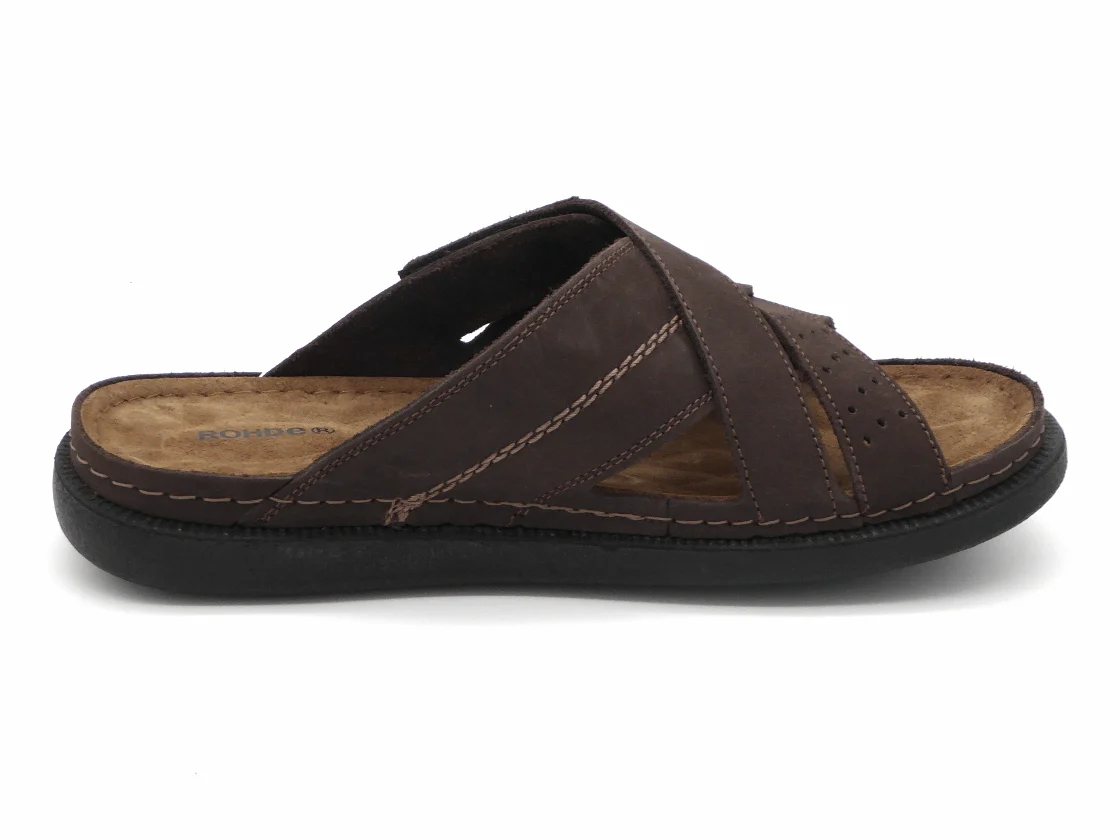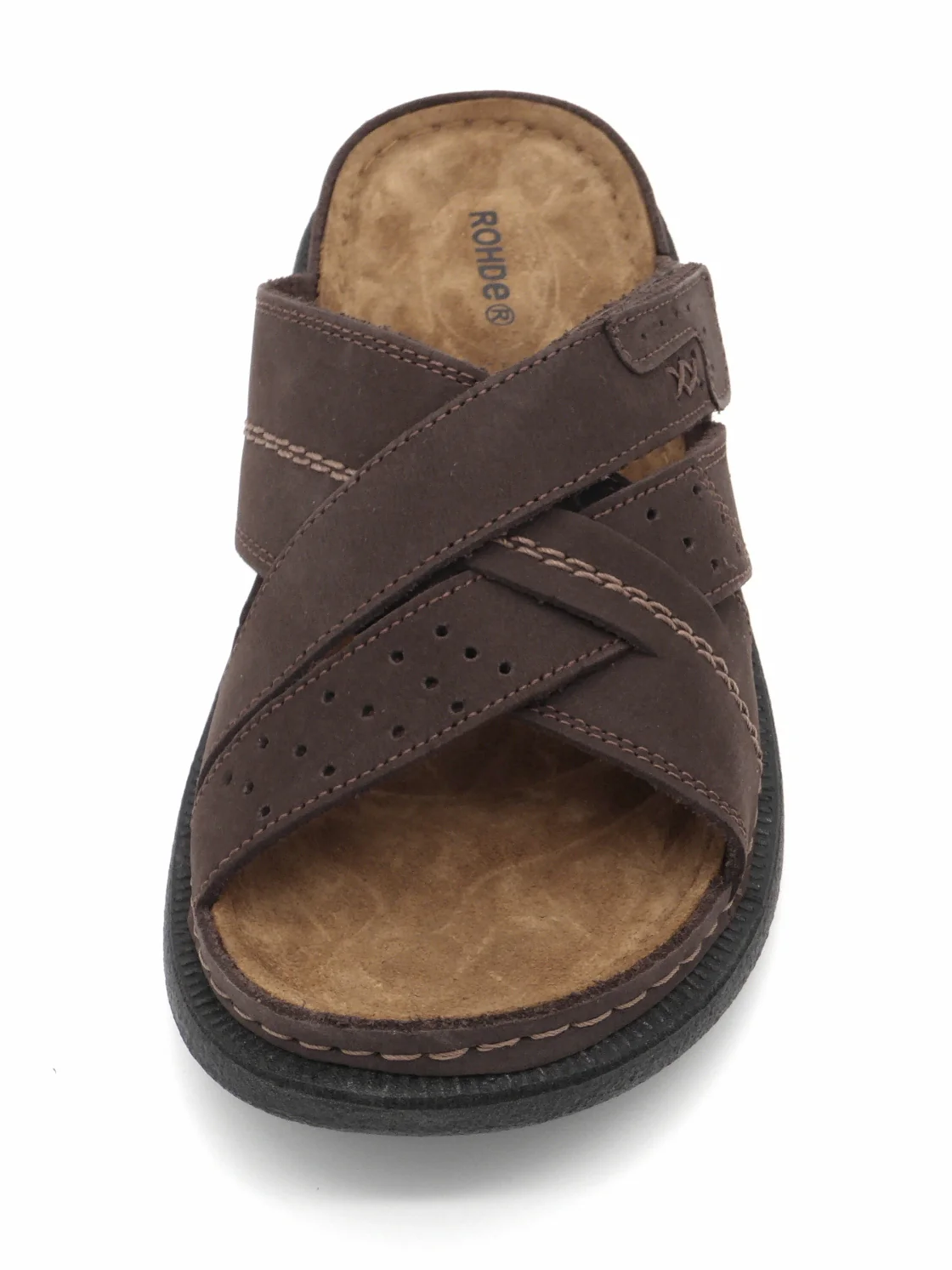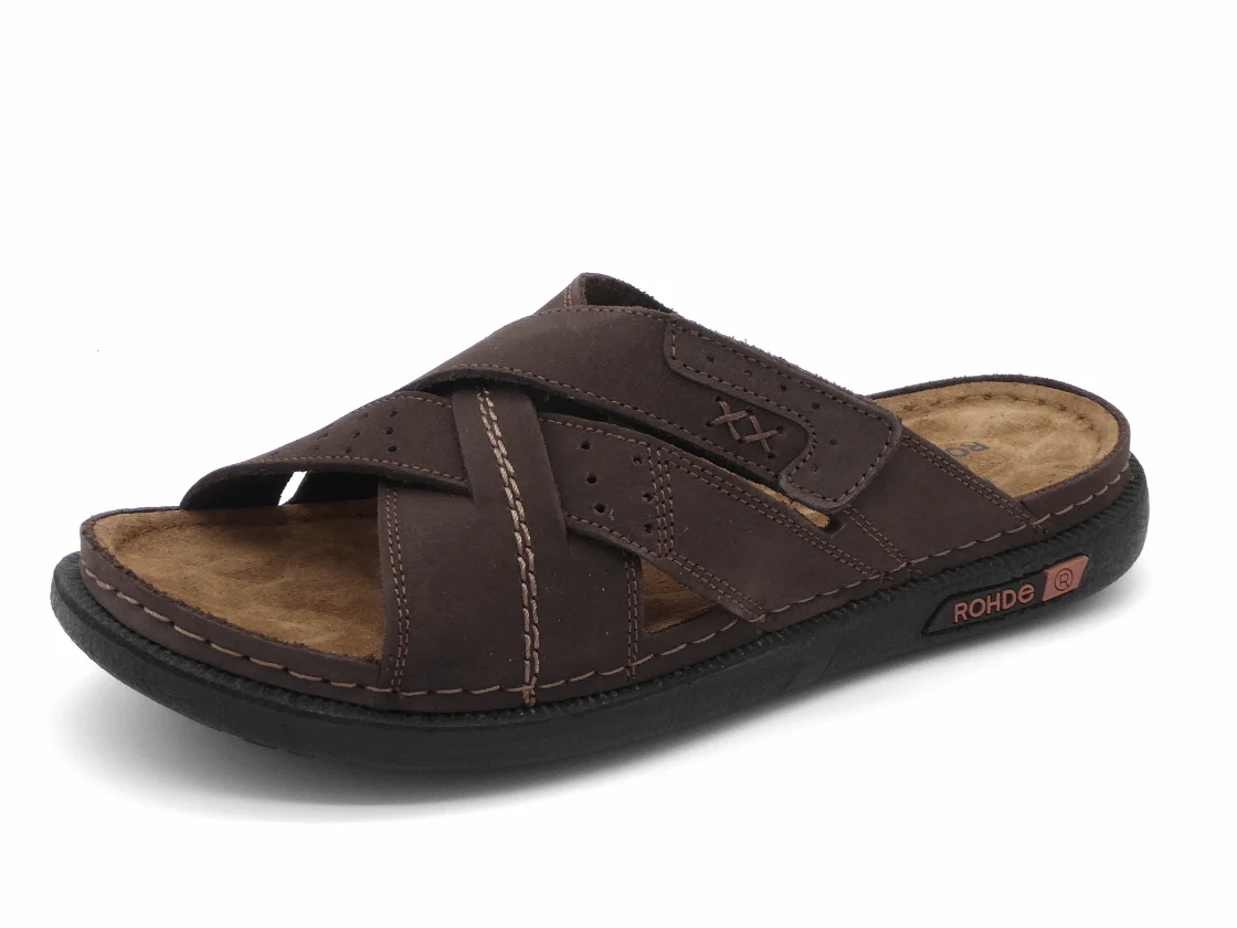 Rohde heren slipper model 6001 uitgevoerd in waxleer. De voering is ook van leer. Deze slipper met een uitstekende pasvorm heeft een kruisband op de wreef en 1 band met klittenbandsluiting. Het voetbed heeft een zachte suède deklaag en zorgt ervoor dat u lang en comfortabel op de slipper kunt lopen. De rubberen zool zorgt voor uitstekende demping en ondersteuning,