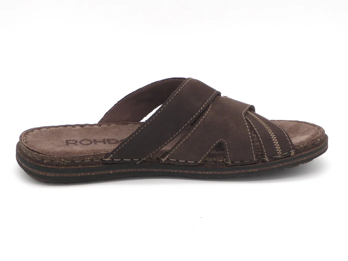 Rohde heren slipper model 6711 uitgevoerd in nubuckleder. De voering is ook van leer. Deze slipper met een uitstekende pasvorm heeft een kruisband op de wreef. Het voetbed heeft een zachte suède deklaag en zorgt ervoor dat u lang en comfortabel op de slipper kunt lopen. De PU-zool is licht en flexibel.
