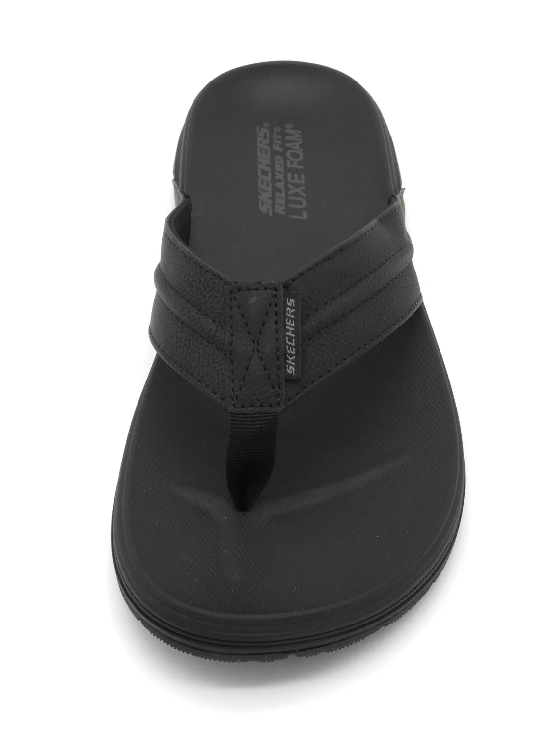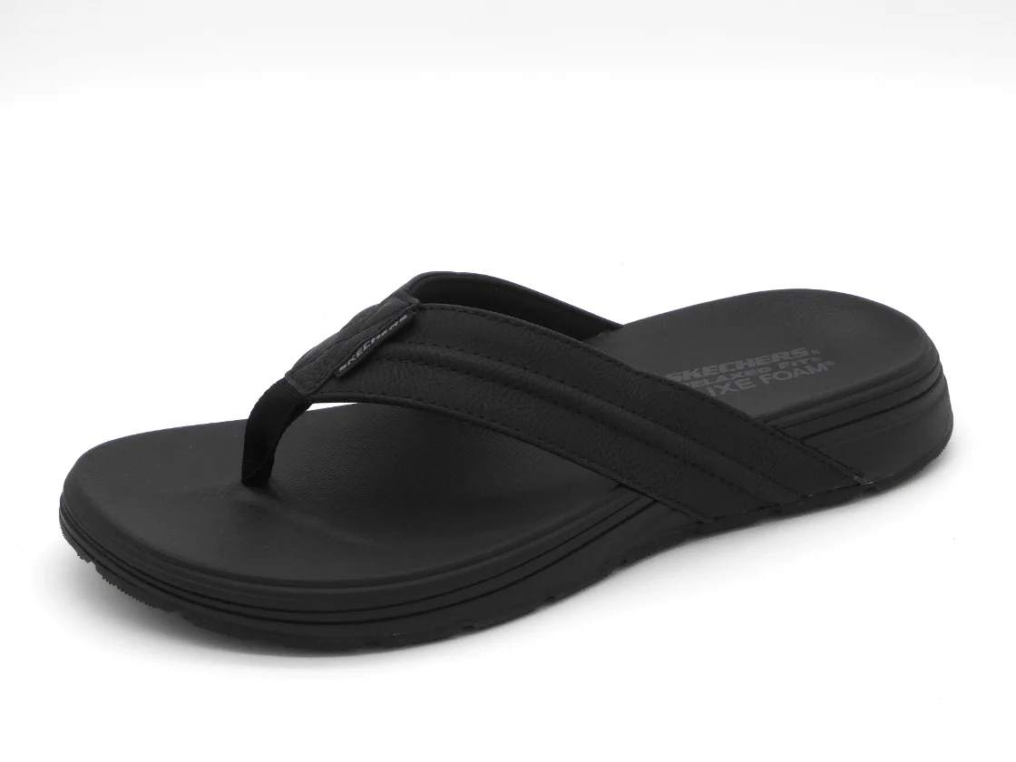 Relaxed Fit heren teenslipper Skechers Patino – Marlee heeft een bovenwerk van van glad kunstleer met stikseldetail. Het comfortabele voorgevormde Luxe Foam® voetbed geeft goede demping. Het Relaxed Fit®-ontwerp geeft een ruime, comfortabele pasvorm. Deze 3-punts teenslipper heeft een flexibele tractiebuitenzool met grip. Dit model is gemaakt van 100% veganistische materialen.