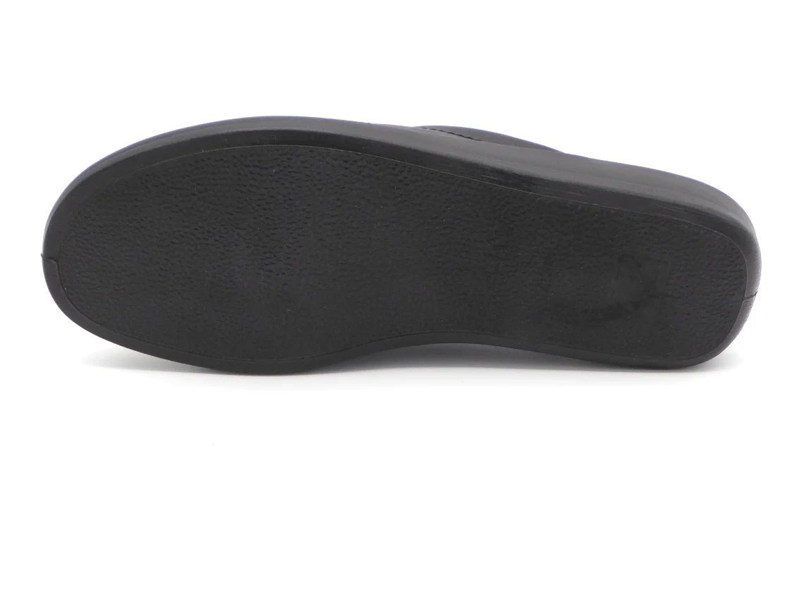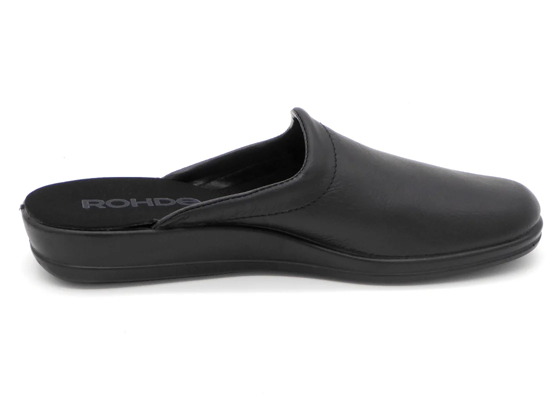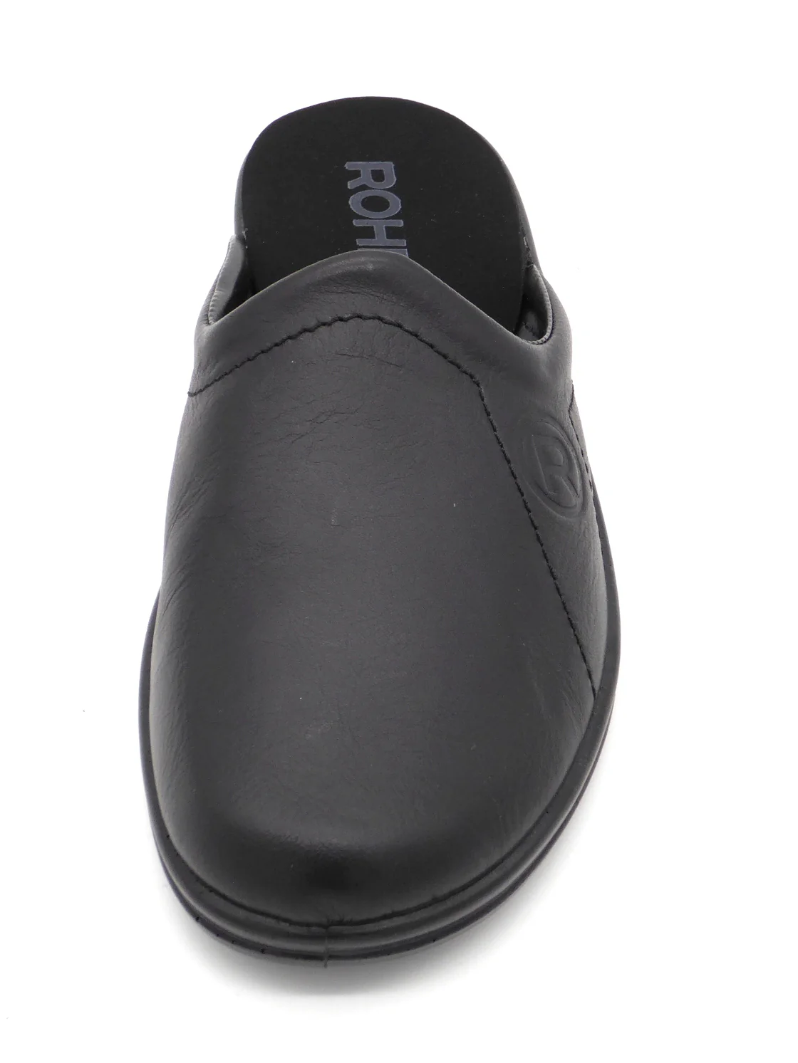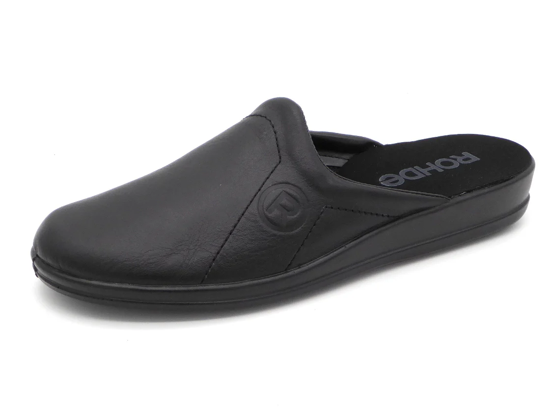Rohde heren muil/pantoffel artikel 1558 in de kleur zwart. Het bovenwerk van de slipper is uitgevoerd in nappaleer, de voering is een combinatie van leer en textiel. Deze slipper heeft een heerlijk zacht en flexibel voetbed, echt een aanrader! Kortom een geweldige slipper die loopcomfort garandeert! Dit model heeft een normale breedte wijdte G en heeft een vast voetbed.
