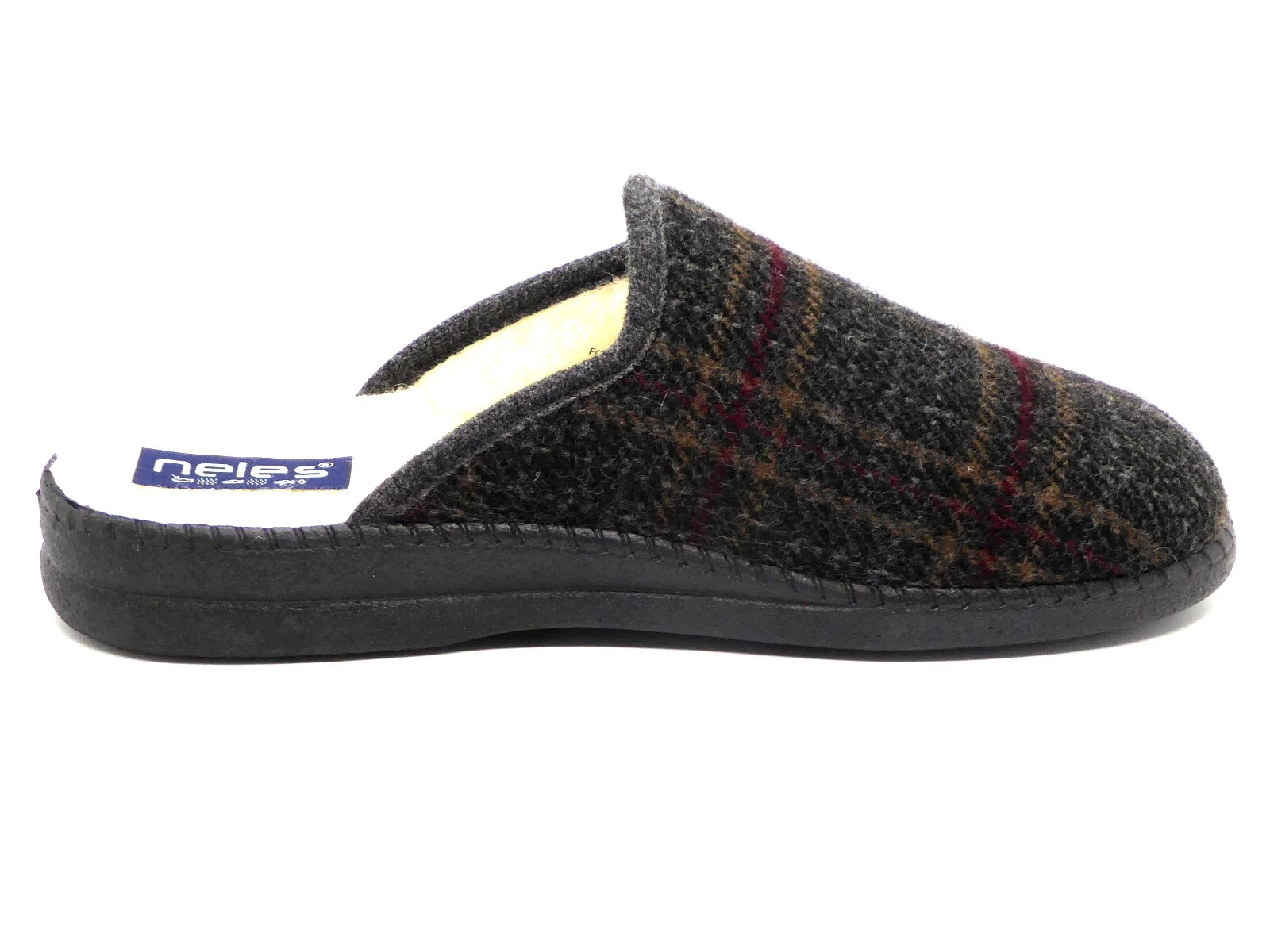 Neles heren pantoffel muil met geruit motief en extra warme wollen voering. De pantoffel muil heeft een soepele rubber zool voor extra stapcomfort. Deze pantoffel muil valt klein uit. Bestel zeker 1 maat groter.