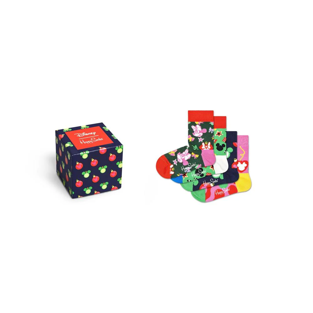 Gifset met 4 paar vrolijke kindersokken in het Disney Kerst Mickey Mouse thema.