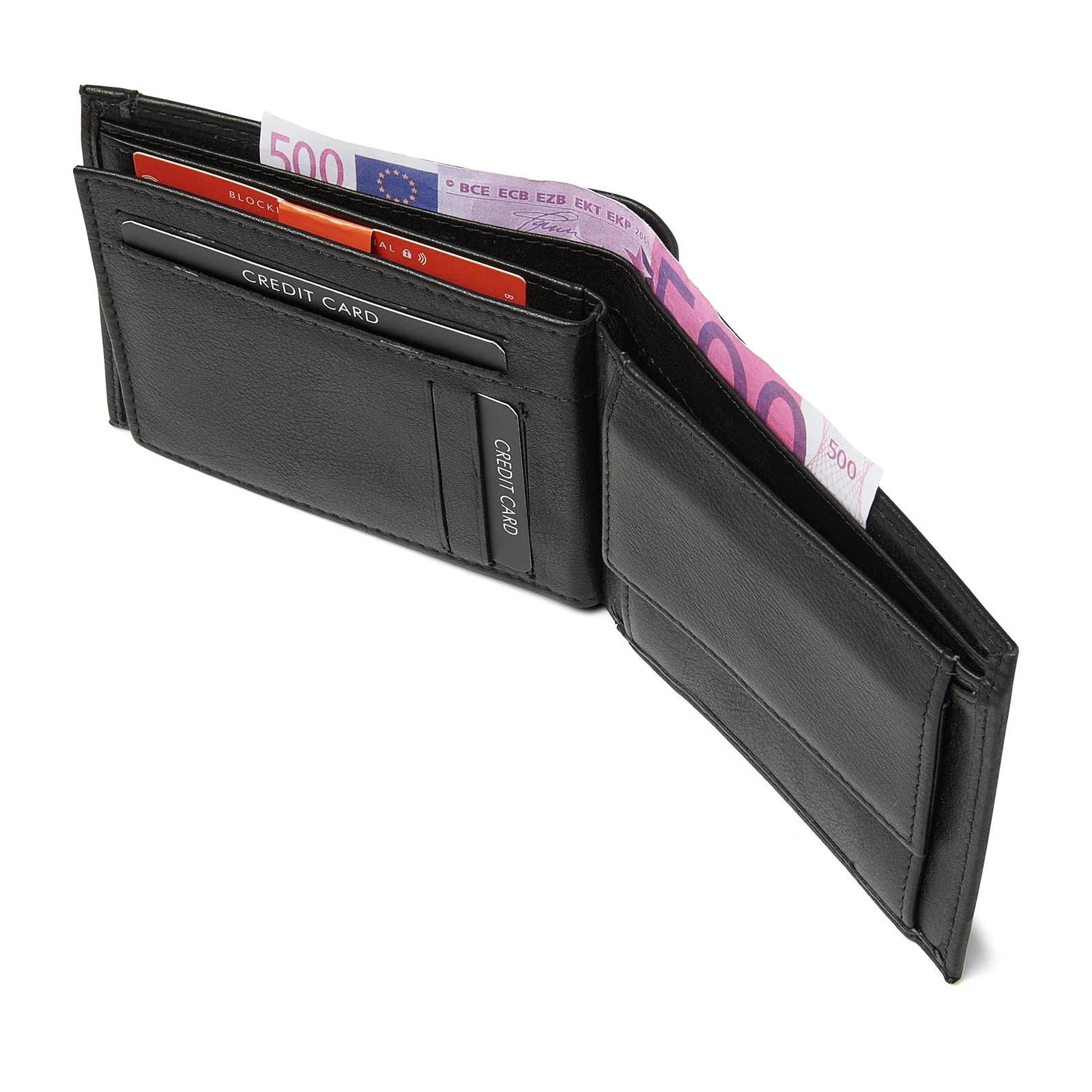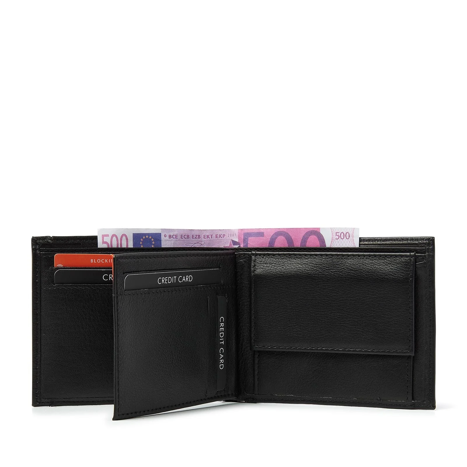 Deze mooie, rund lederen billfold is erg functioneel in gebruik. Het heeft plaats voor maar lieft tien betaalpassen en heeft twee vakken voor papiergeld. Muntgeld kan eenvoudig worden opgeborgen in het daarvoor bestemde vak met klep met druksluiting. De billfold heeft daarnaast twee extra steekvakken, waarvan een met kijkvenster. In de voering beschikt deze billfold over RFID bescherming.
