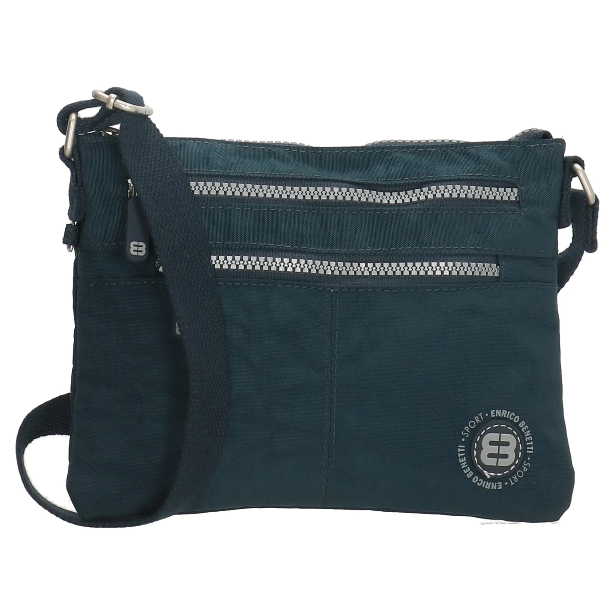 Deze schoudertas uit de crinkle nylon serie Frances van Enrico Benetti biedt verrassend veel opbergruimte! De tas heeft een een hoofdvak, twee voorvakken en een achtervak met ritssluiting. En in het hoofdvak zit ook nog een steekvak en extra ritsvak. Het tasje is afgewerkt met grove contrasterende kunststof ritsen en sportieve rubberen details. De schouderband is van mooi mee gekleurd katoen en is verstelbaar. Deze heuptas is dus ideaal om je belangrijke spullen mee te nemen. De schoudertas is verkrijgbaar in mooie basic kleuren en tevens zijn er binnen de Frances serie andere schoudertassen, een heuptas en rugtassen beschikbaar.
