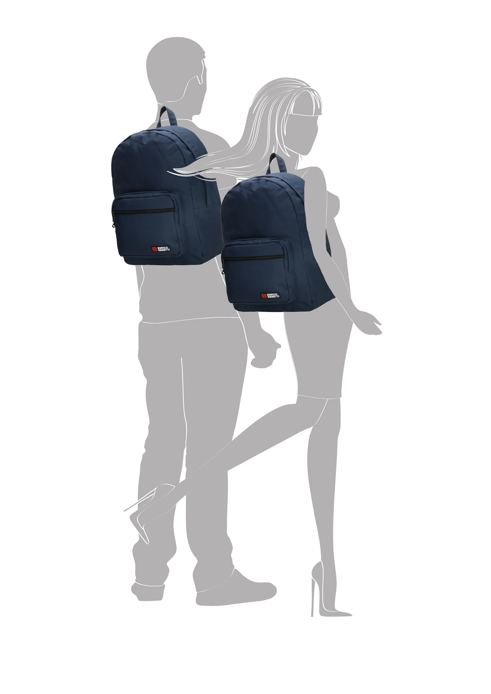 Deze Enrico Benetti rugtas is een mooie basic tas die ideaal is om al je schoolspullen in mee te nemen. De tas heeft een groot vak en een kleiner voorvak, beiden met ritssluiting. De rugzak is gemaakt van stevig polyester en voorzien van twee verstelbare schouderbanden.