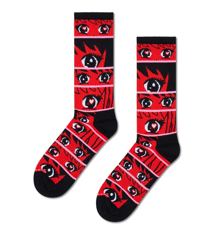 De Anime Stripe Sock heeft een frisse witte basis die de contrasterende animekleuren laat opvallen.