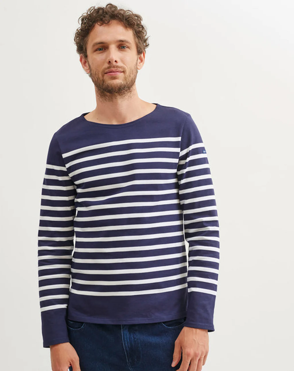 De Naval is het iconische streepshirt van Saint James, ontworpen in 1889 voor de Franse Marine en inmiddels een waar stijlicoon. Dit shirt heeft de tand des tijds glansrijk doorstaan en wordt vandaag de dag nog steeds gedragen door mode-iconen en filmliefhebbers wereldwijd.