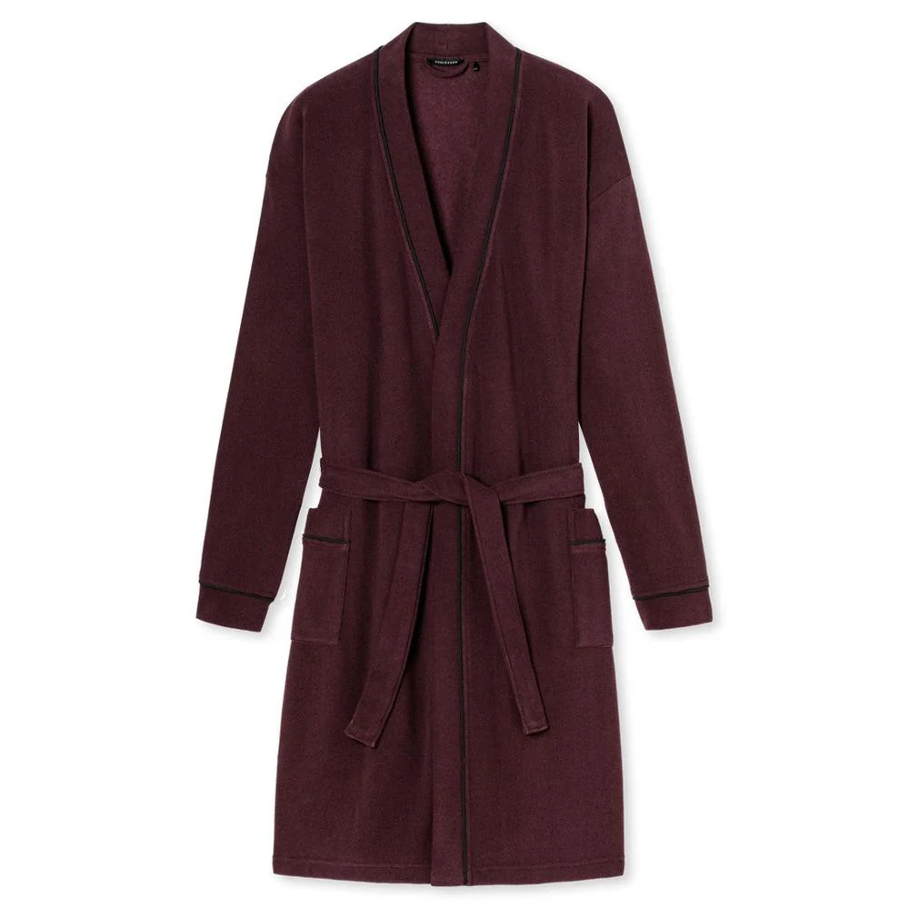 De contrasterende biezen geven deze badjas een elegant accent,