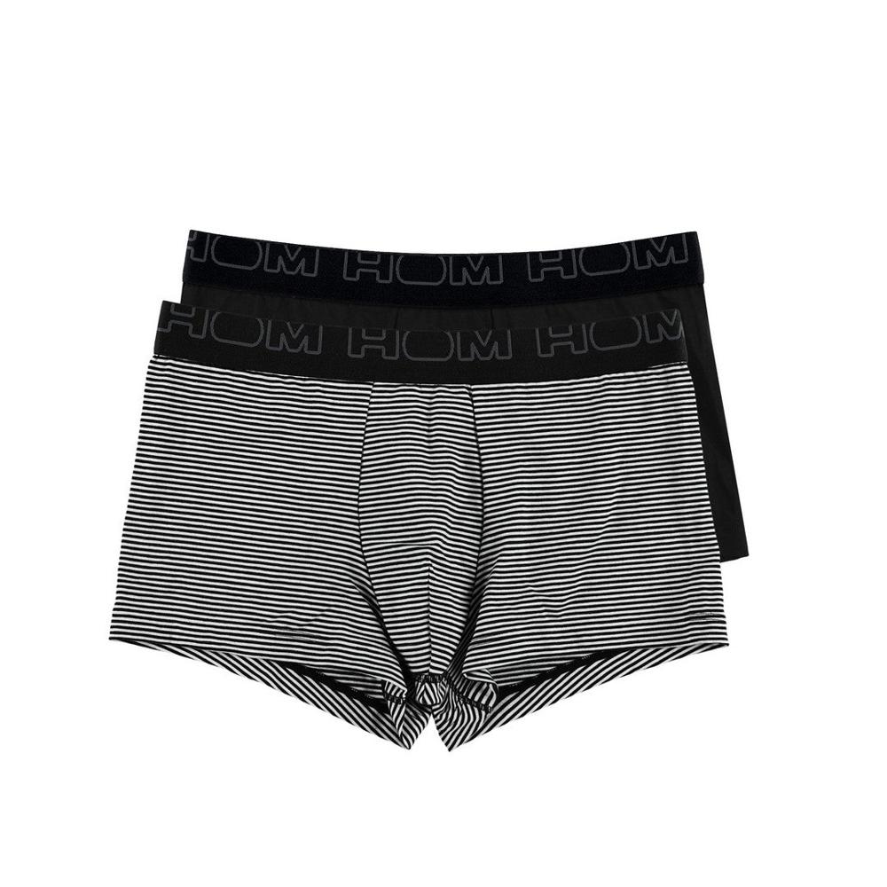 2-pack boxers van Hom, 1 met strepen en 1in uni kleur.