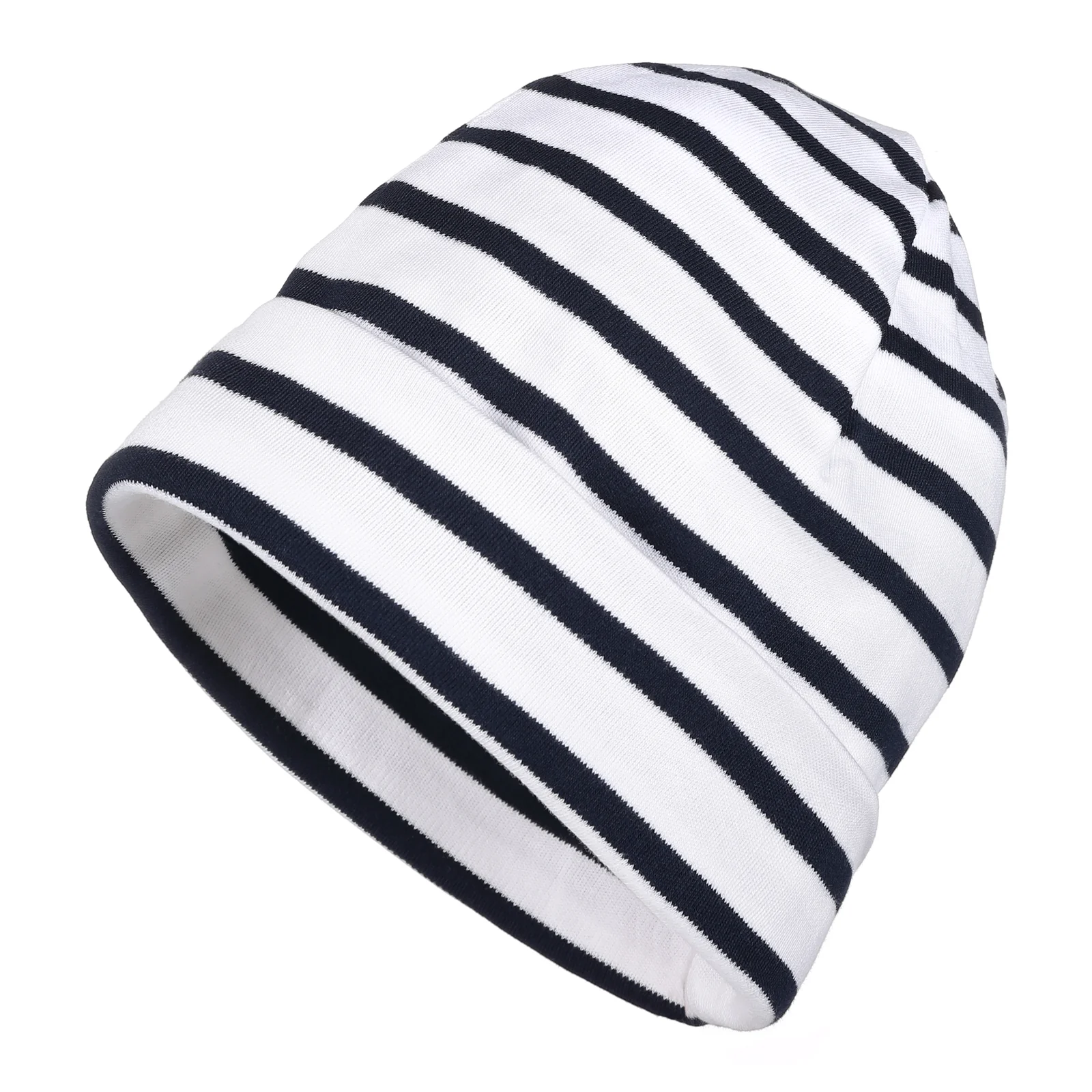 Deze populaire katoenen muts is gemaakt van een superkwaliteit, zijdezacht, rekbaar katoen. De muts is dubbellaags, zacht, sterk en kleurecht. Verkrijgbaar in 25 verschillende kleuren Bretonse strepen en 10 effen kleuren.